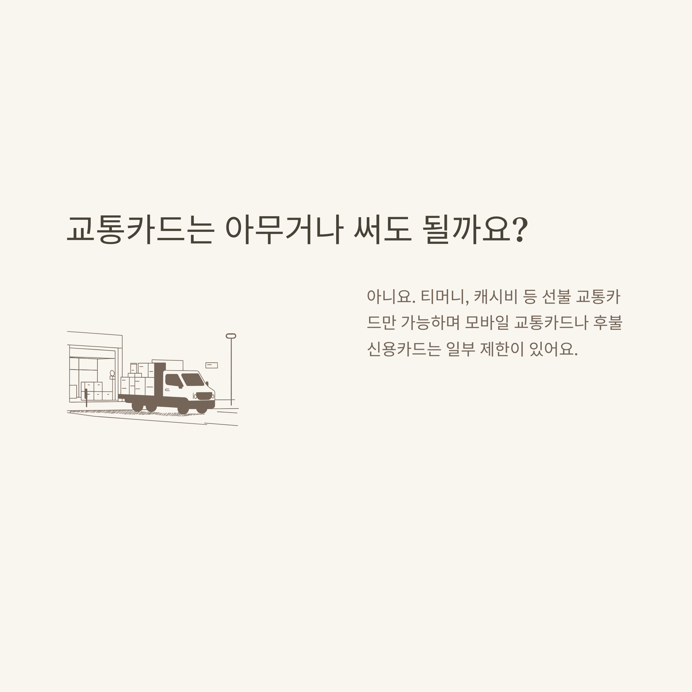 아래 표로 지원되는 교통카드 유형을 한눈에 정리해봤습니다.