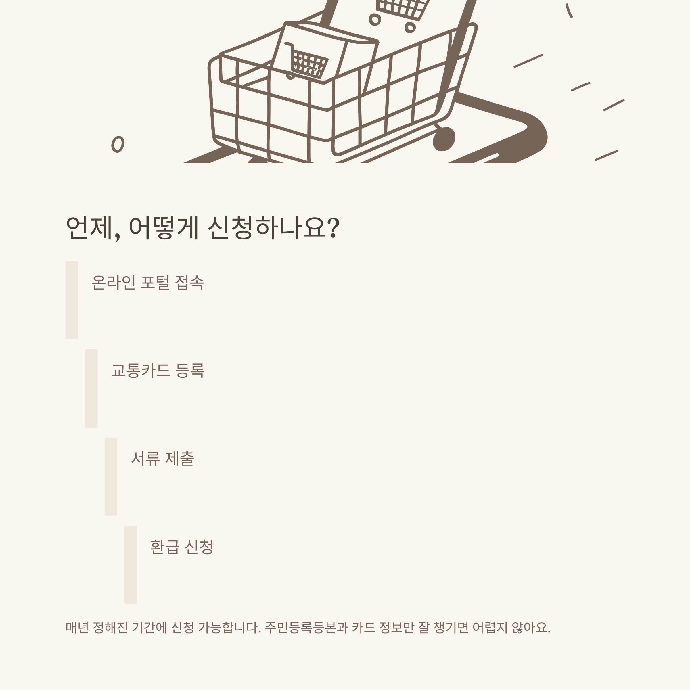 가장 체감이 컸던 점은, 무조건 정액 지급이 아니라 “실제 교통비 사용 내역”을 기준으로 환급해준다는 부분이었습니다. 집안 형편과 상관없이, 아이가 교통카드로 쓴 금액이 많으면 그만큼 더 돌려받을 수 있다는 점이 정말 실용적이었어요.