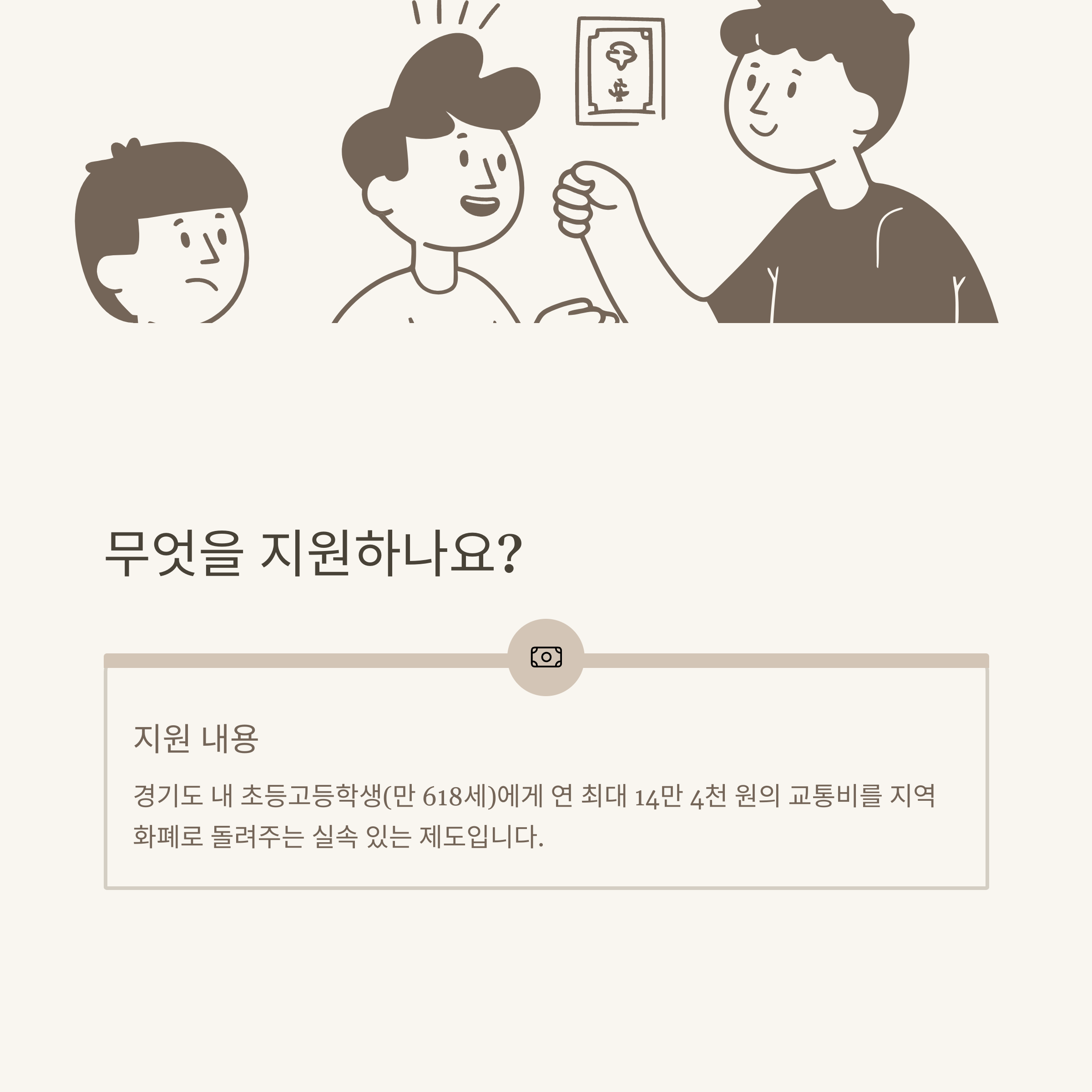 저는 경기도에 거주하면서 대중교통비가 점점 부담스럽게 느껴질 무렵, 주변 학부모 모임에서 이 사업에 대해 처음 들었습니다. 그냥 복잡한 정책이겠지 하고 넘겼다가, 실제로 아이가 매달 교통비를 얼마나 쓰는지 계산해보고선 “이건 꼭 받아야겠다!” 싶어서 자세히 알아보기 시작했어요.