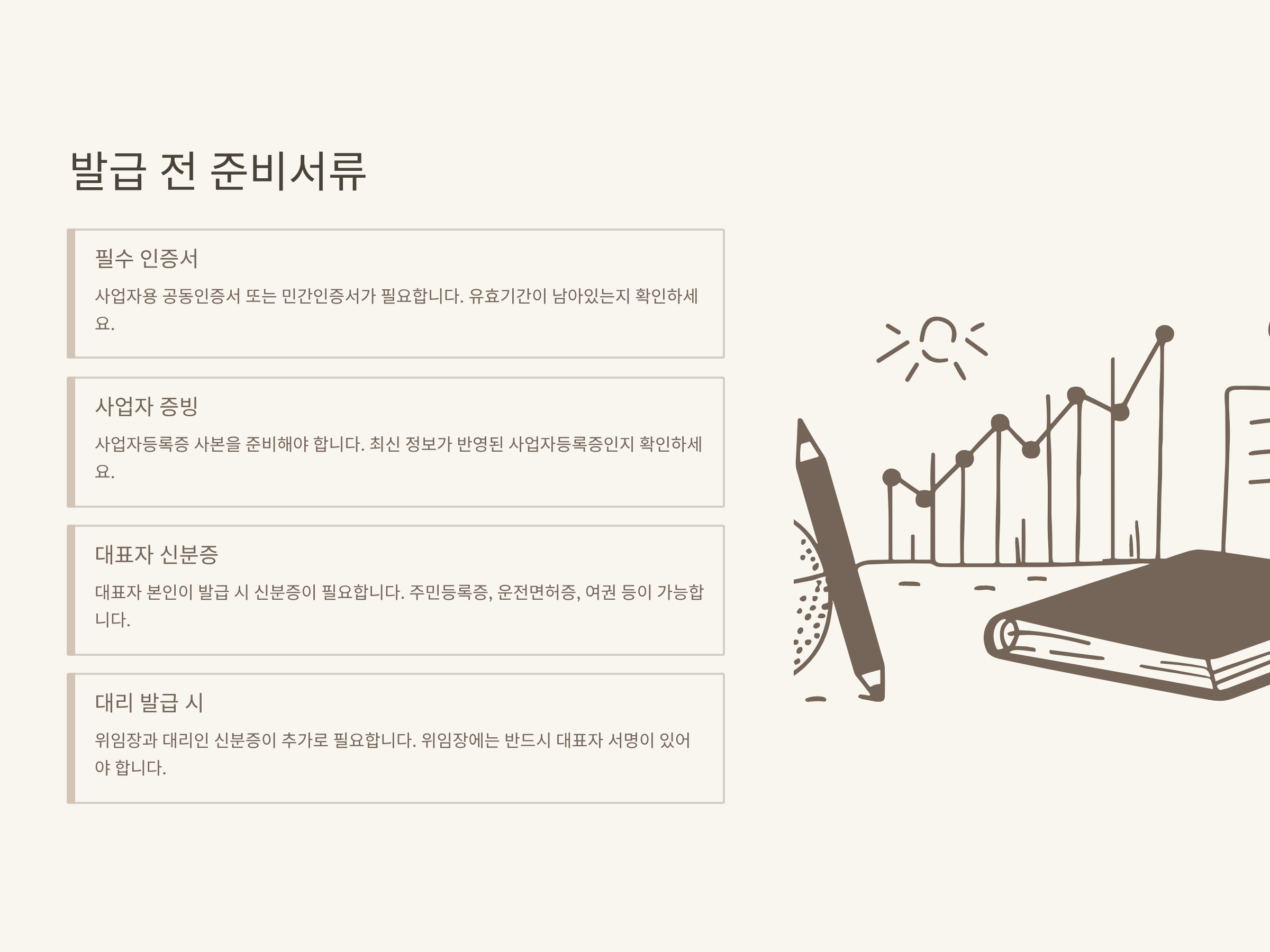 - 필요 서류 제출 (사업자등록증, 신분증, 위임장 등)