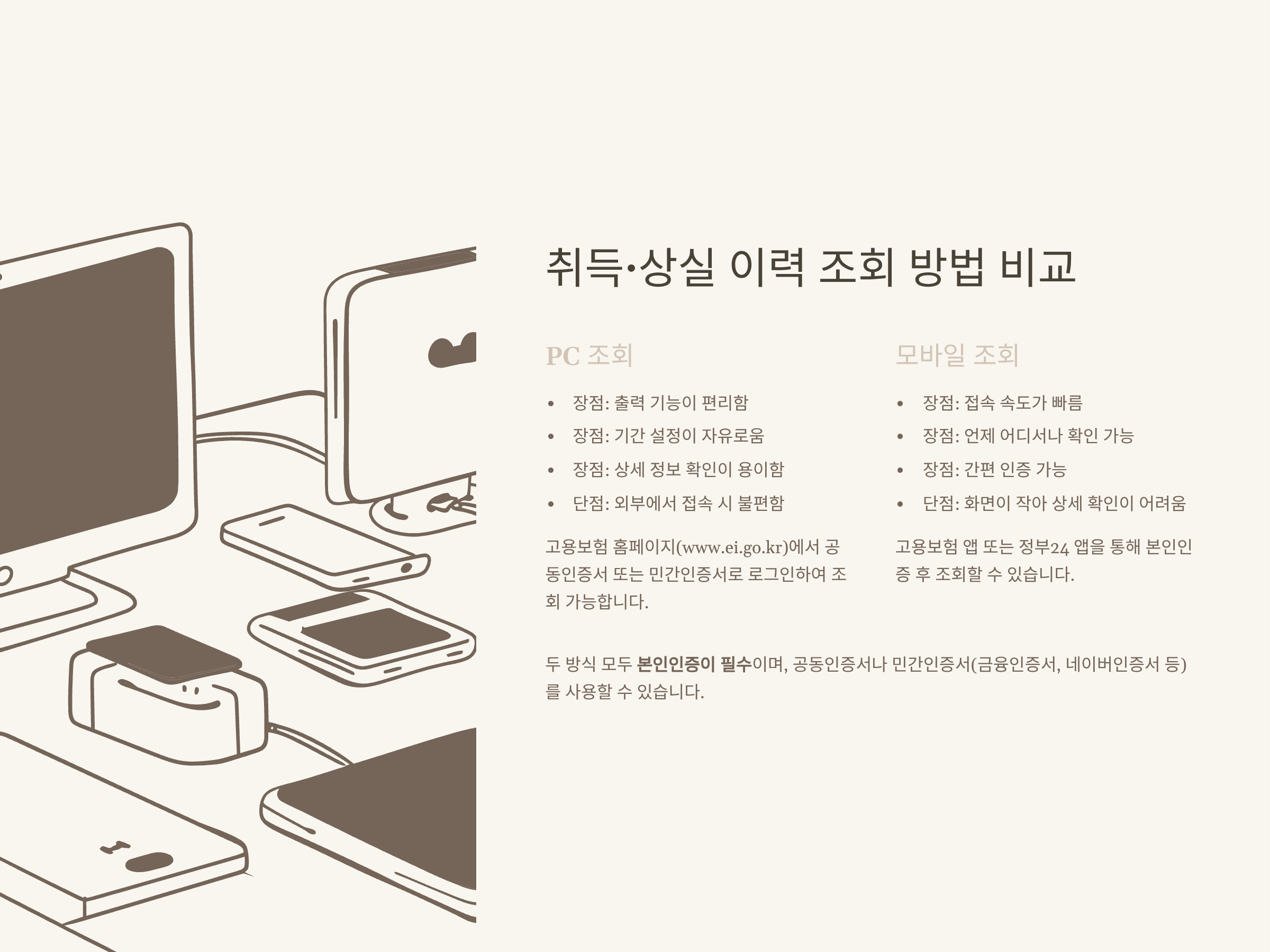 고용보험 취득·상실 이력 조회 방법 (PC/모바일 비교)
