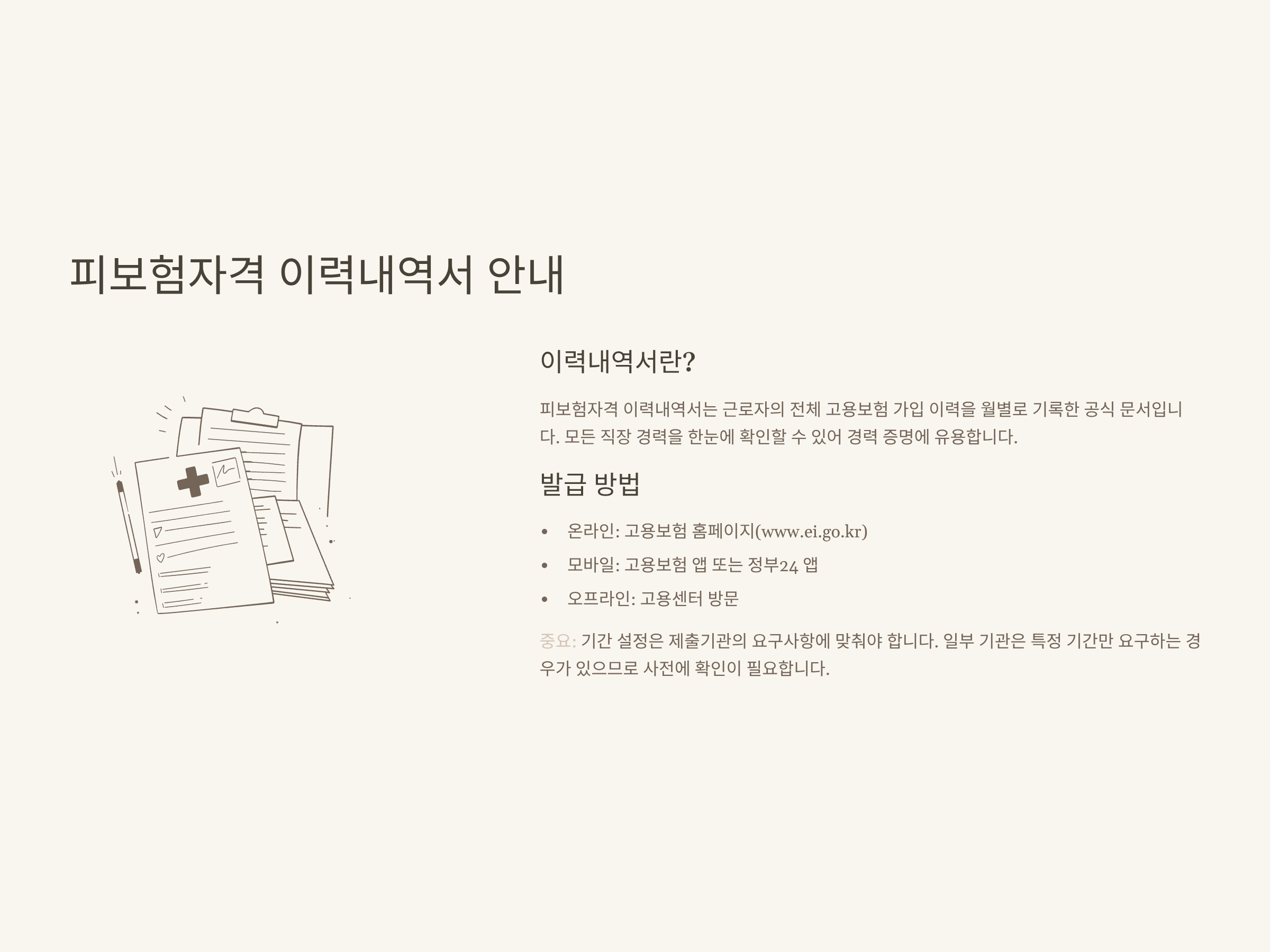 - 발급 경로: 고용보험 홈페이지 또는 공단 지사