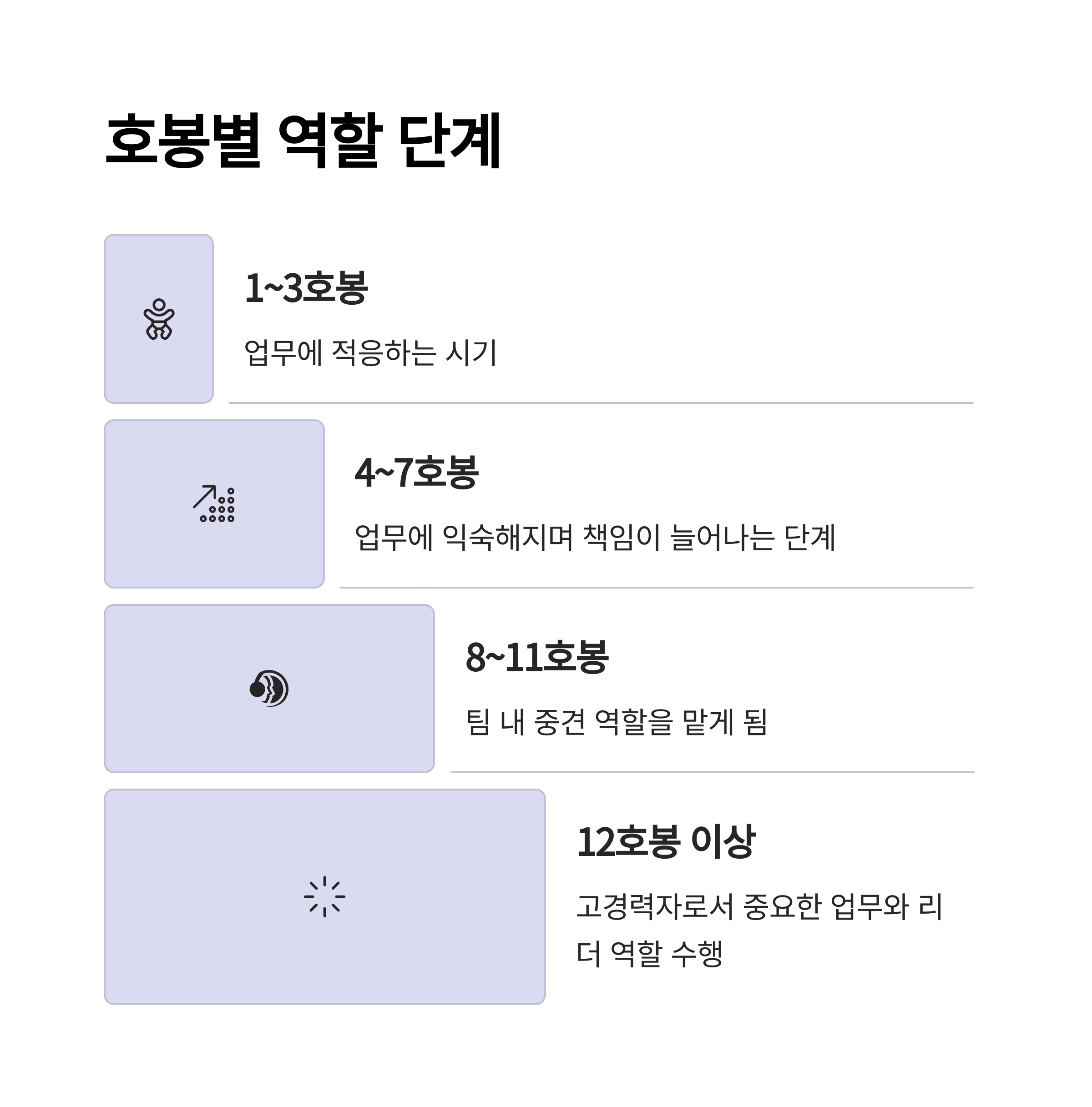 - 4~7호봉: 실무 적응 및 업무 숙련 단계