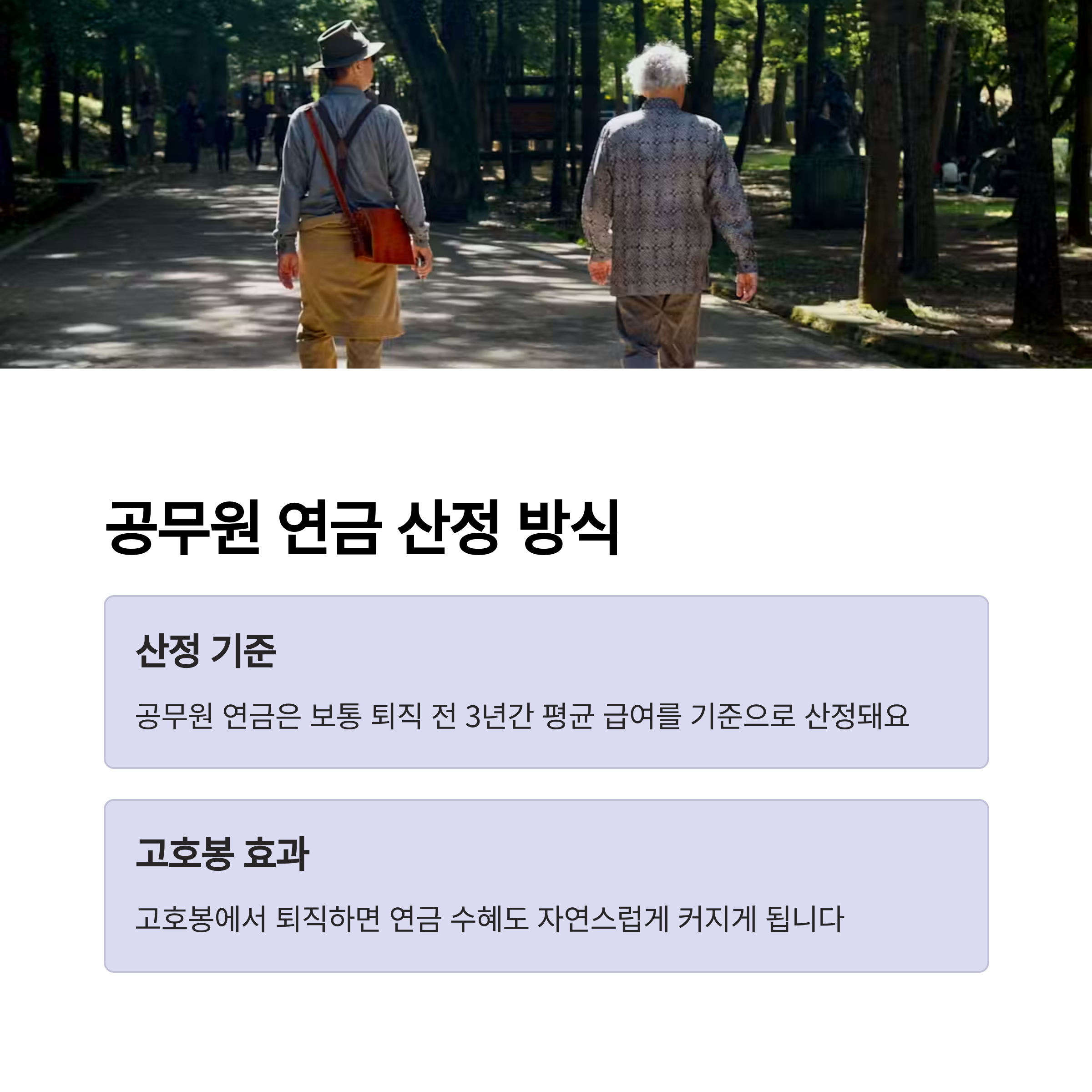 제가 공무원 생활을 하면서 가장 장기적으로 관심 가졌던 부분이 바로 공무원연금입니다. 호봉이 오를수록 기본급이 올라가기 때문에, 이는 연금 산정 기준에도 직접적인 영향을 미쳐요. 공무원연금은 평균 기준소득월액을 바탕으로 산정되는데, 이 기준소득월액은 대부분의 경우 최근 3년 평균 급여를 따릅니다.