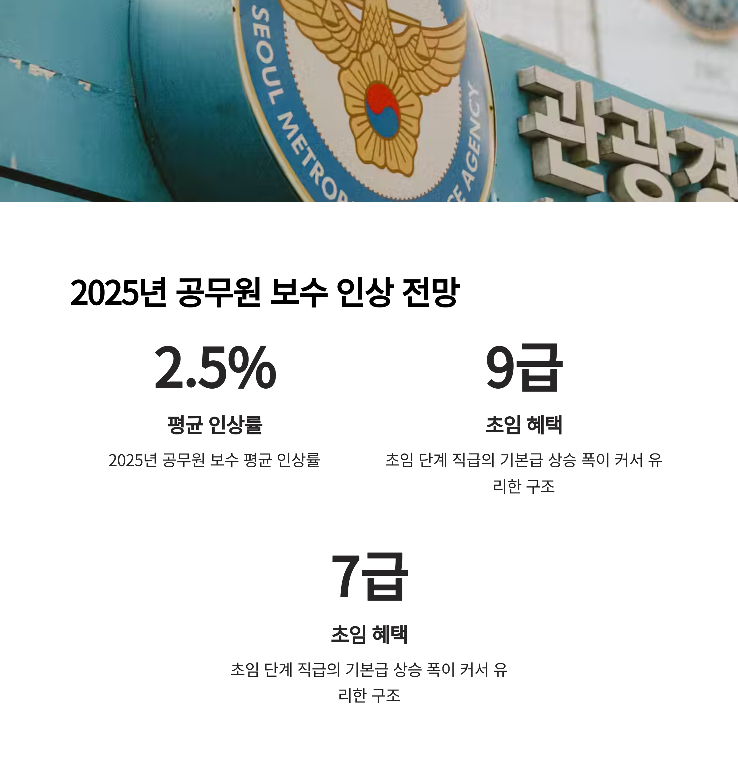 | 기본급 기준 | 9급 1호봉 기준 약 174만원 (2025년 예상) |