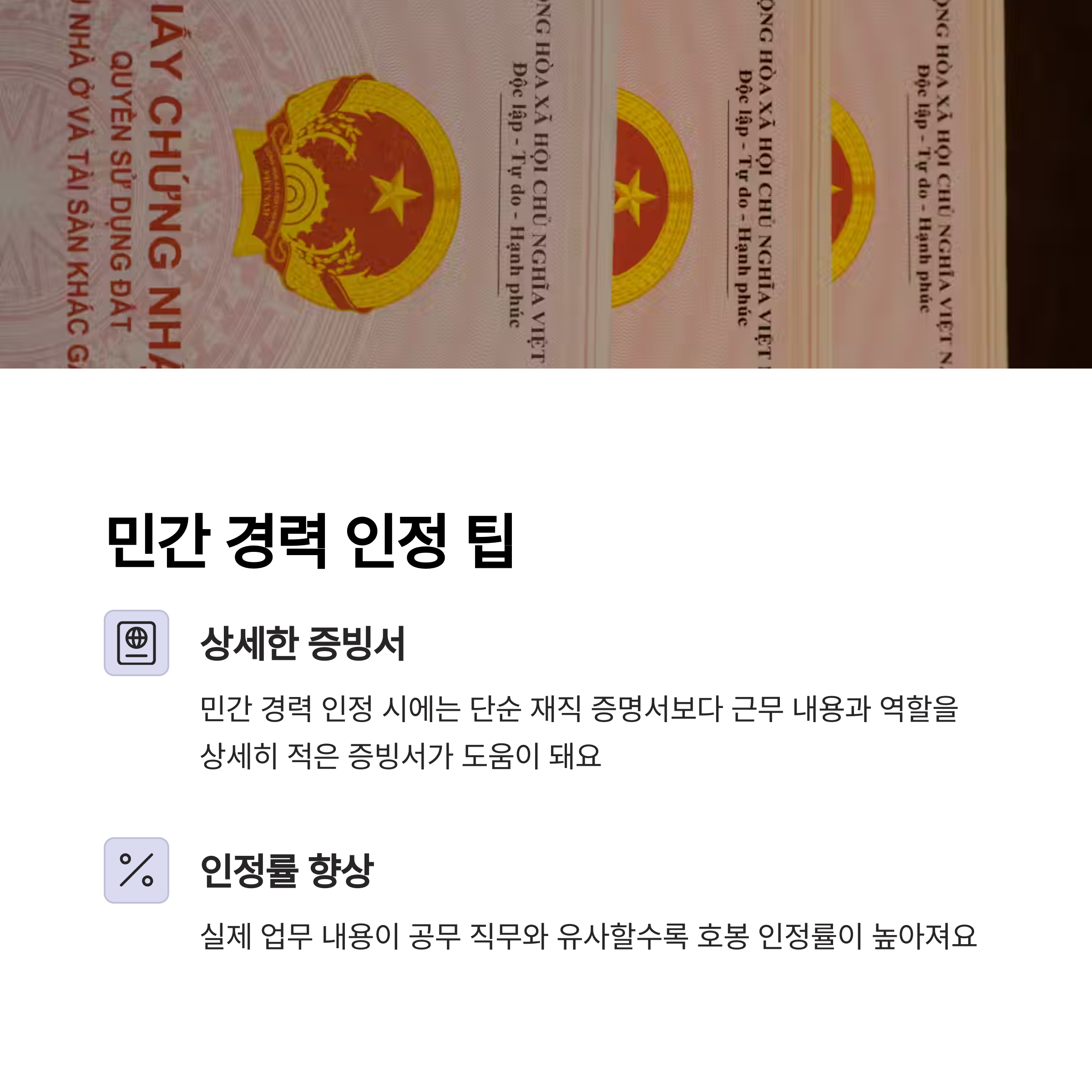 공무원 호봉 인정 기준은 국가공무원법 시행령에 명시되어 있으며, 실무에서는 인사담당자가 행정안전부 지침에 따라 판단하게 됩니다. 경력증명서 제출이 핵심인데, 저는 증명서에 '근무내용 및 직무 상세기술'이 들어가도록 작성해달라고 요청했더니 인정 비율이 높았어요.