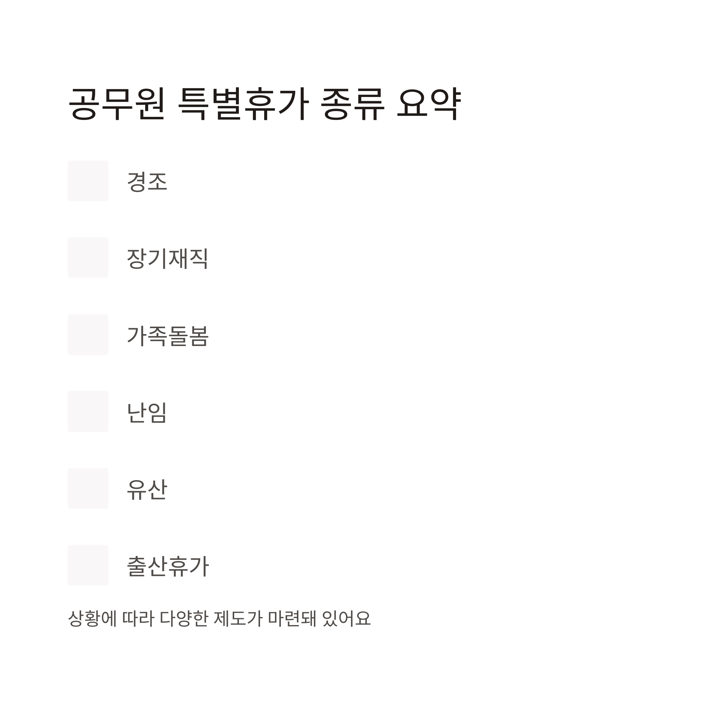 공무원 장기재직휴가가 도대체 어떤 제도인지, 누가 얼마나 쓸 수 있는지 궁금하셨죠? 이 글에서는 공무원 장기재직휴가를 중심으로 가족돌봄휴가, 경조휴가, 난임휴가, 유산휴가, 출산휴가 등 다양한 특별휴가와의 차이까지 실사례 중심으로 정리해드립니다.