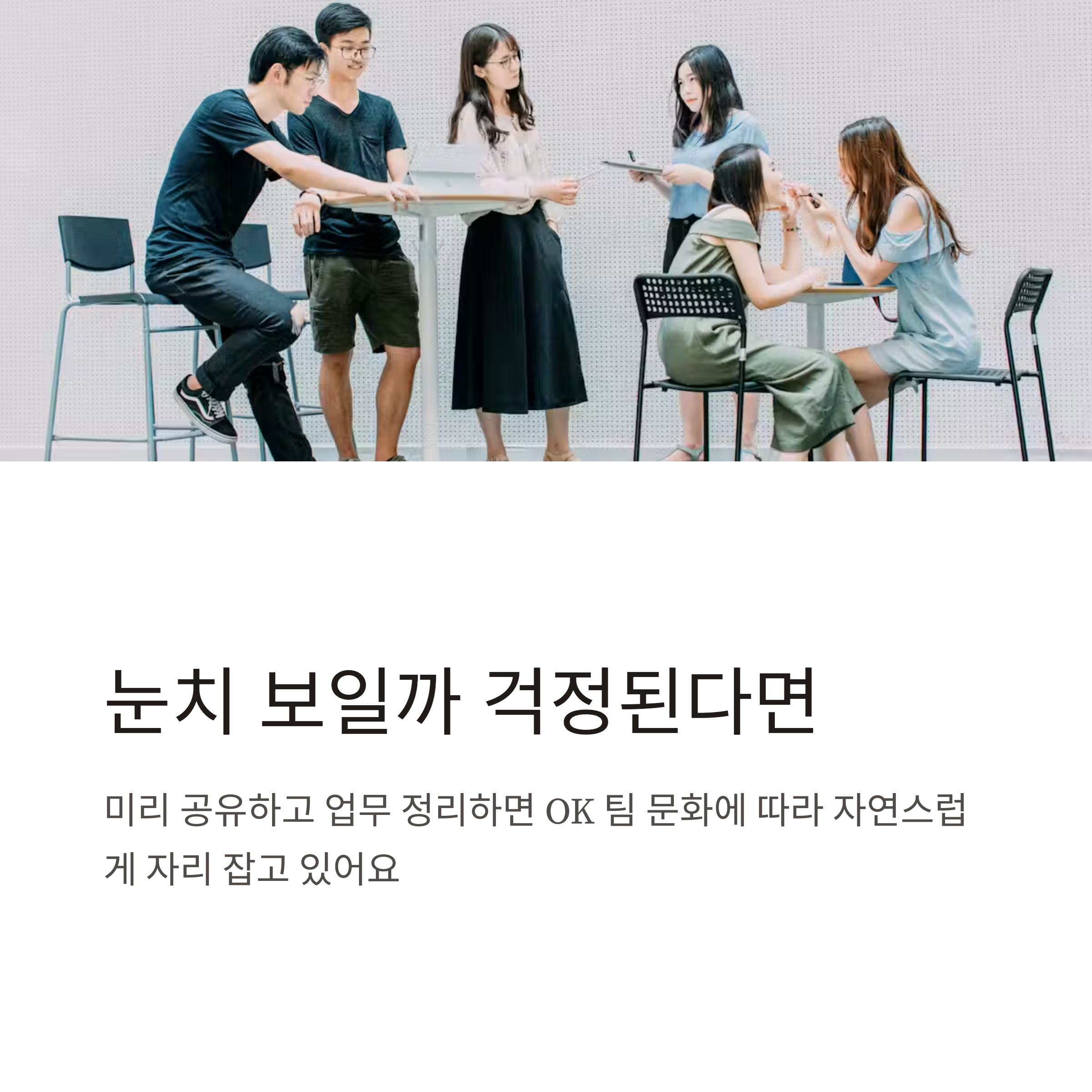 장기재직휴가를 앞두고 가장 고민됐던 부분 중 하나는 “눈치 보이지 않을까?”였어요. 특히 저는 팀장 직책을 맡고 있어서 팀원들의 업무 분장을 고려하지 않을 수 없었습니다. 그런데 실제로 사용해보니 생각보다 분위기가 괜찮았습니다.