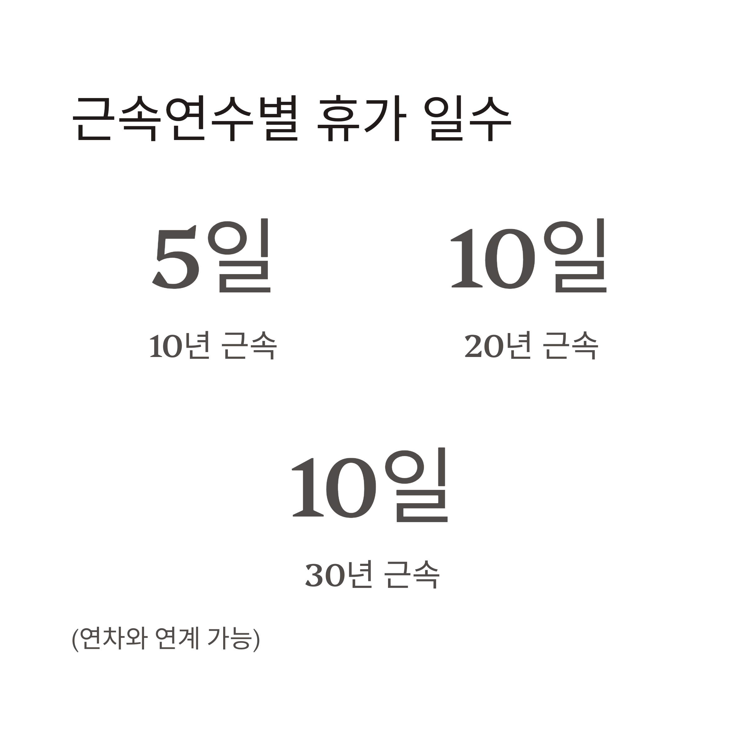| 장기재직휴가 | 5~10일 | 10/20/30년 근속 시 |