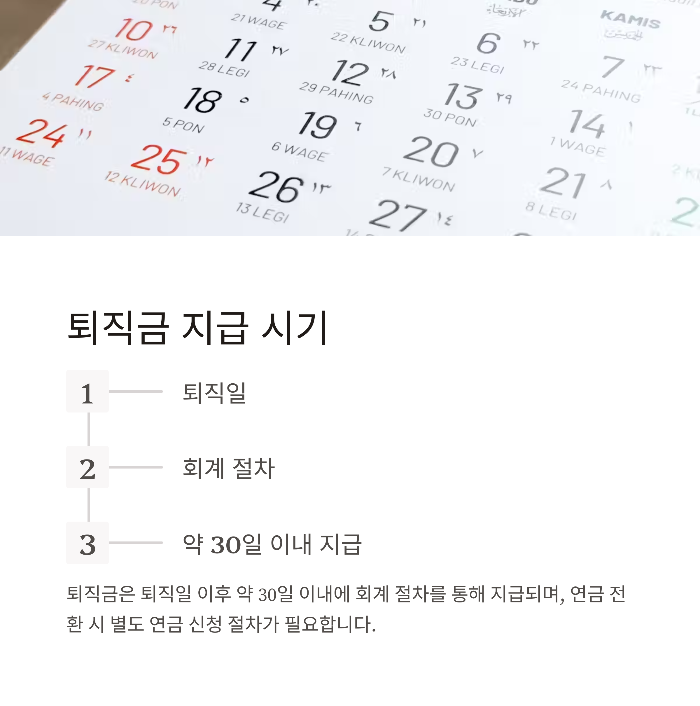 - 퇴직금 수령 시기 및 절차