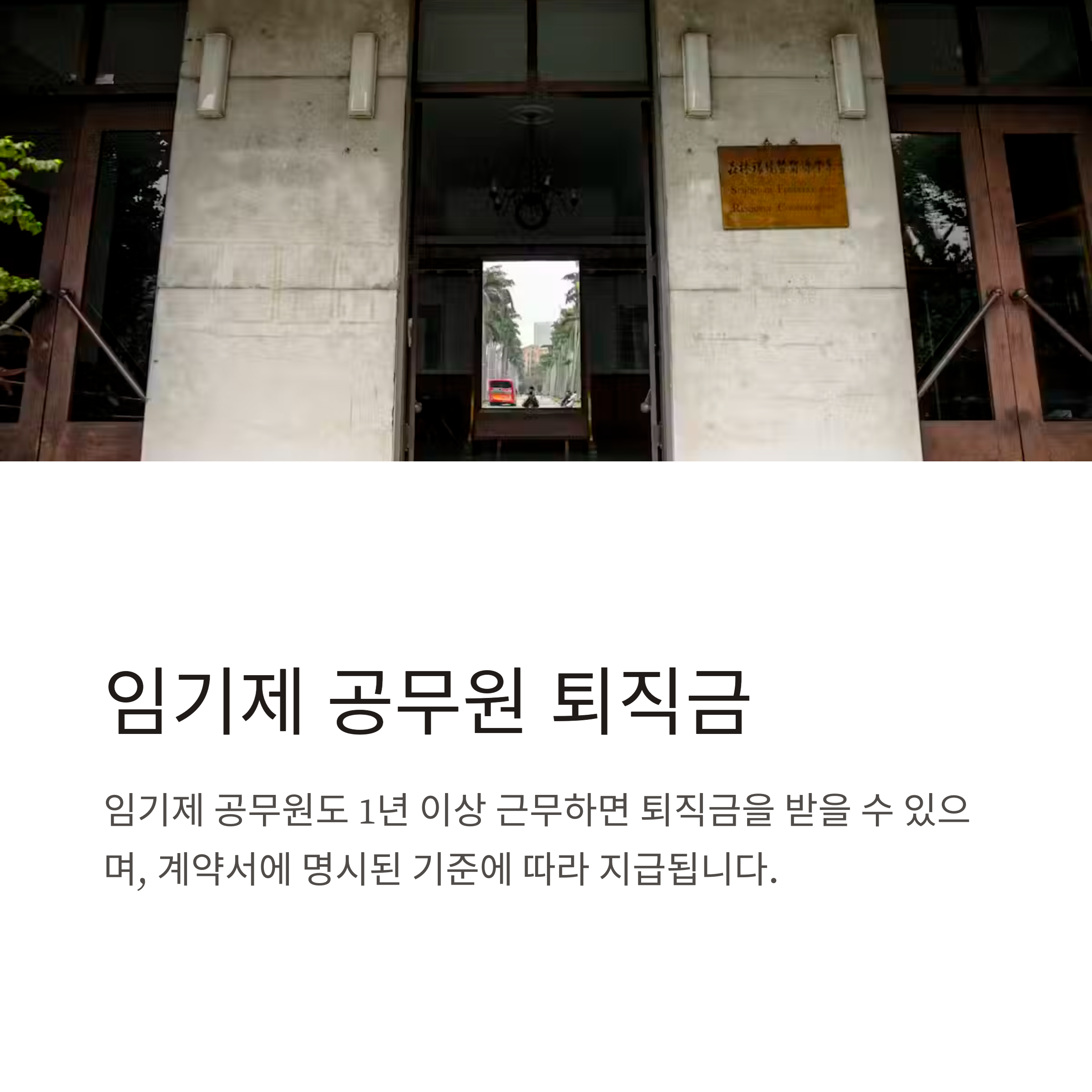 제가 아는 분 중 임기제 공무원으로 근무하시다가 계약 종료 후 퇴직금을 수령한 사례가 있습니다. 일반 공무원과 달리 임기제는 계약직 성격이기 때문에 퇴직금 산정 기준도 약간 다릅니다. 통상 1년 이상 근속 시 퇴직금 발생하며, 지급 기준은 근속기간 및 계약서에 명시된 내용이 중요합니다.