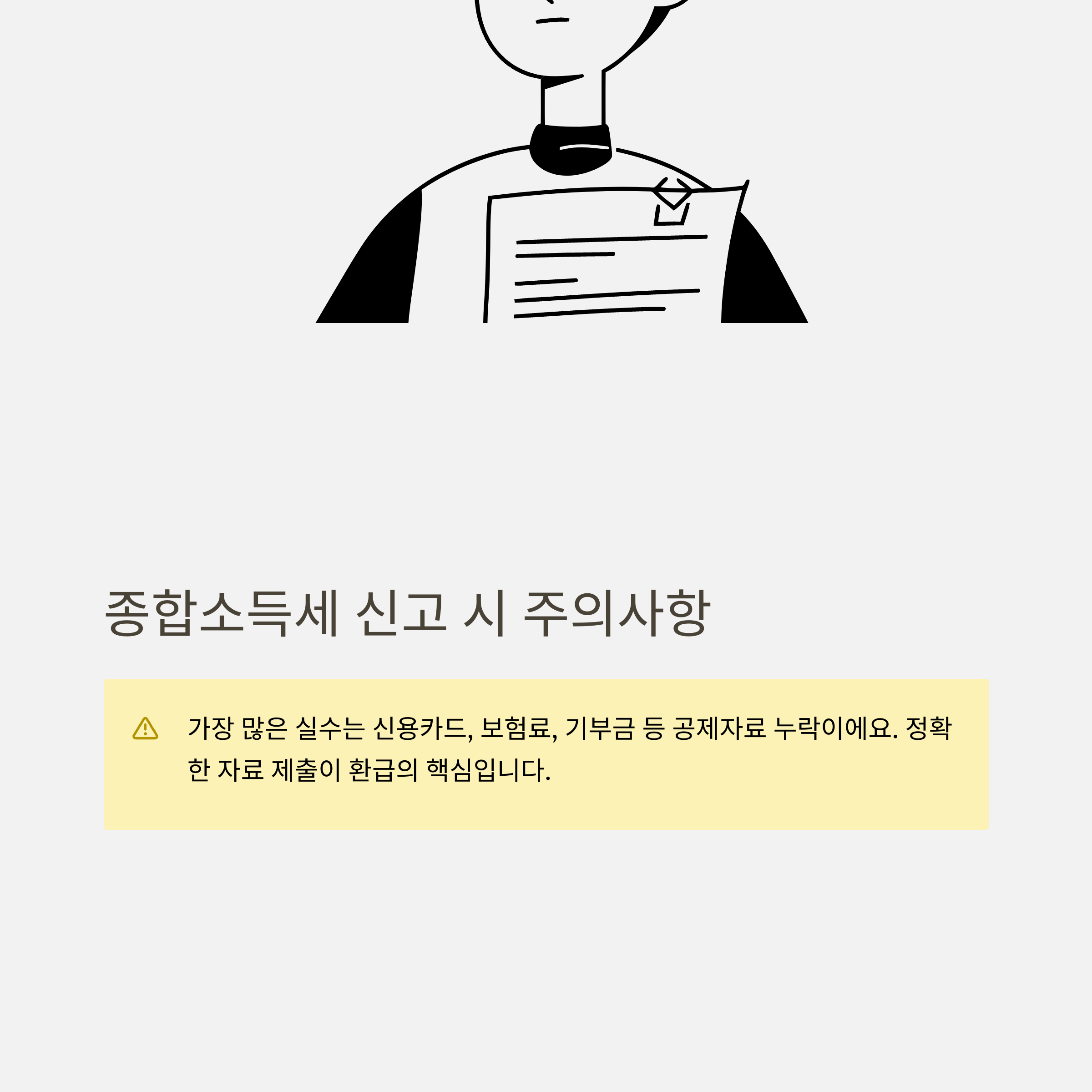 종합소득세 신고 시 공제초과로 인해 환급받을 수 있는 기회가 많지만, 주의해야 할 사항도 분명히 있습니다. 가장 대표적인 실수가 공제자료 누락이에요. 저도 신용카드 사용액 중 하나가 누락돼서 처음엔 환급액이 적게 나왔고, 경정청구 후에야 제대로 환급받았었죠. 특히 종소세 신고 시 유의해야 할 대표 공제 항목은 다음과 같습니다:
