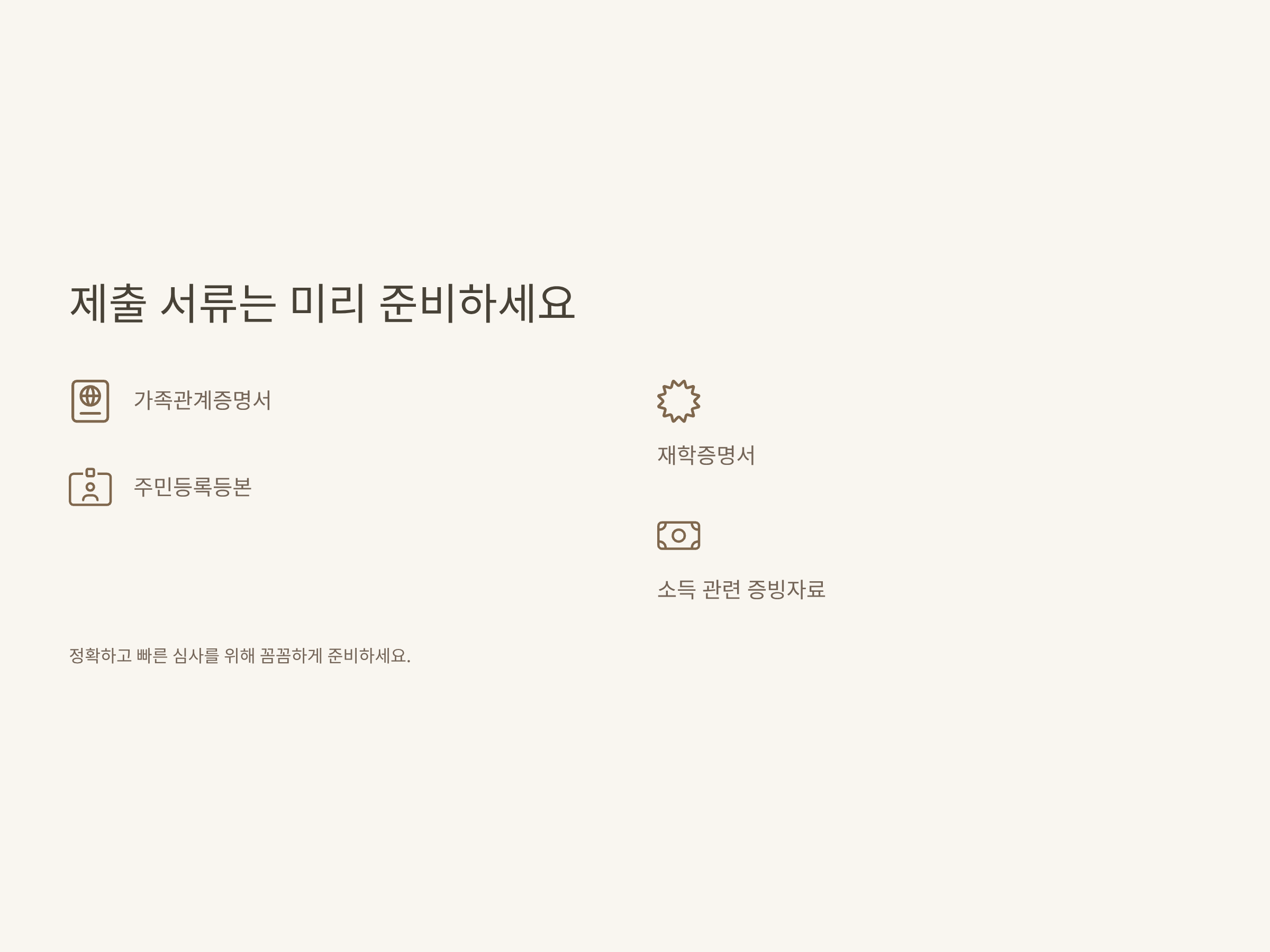 자세한 신청 절차와 제출 서류 목록은 한국장학재단 홈페이지 내 ‘국가장학금 신청 안내’에서 확인 가능합니다. 신청 절차 및 서류 확인하기