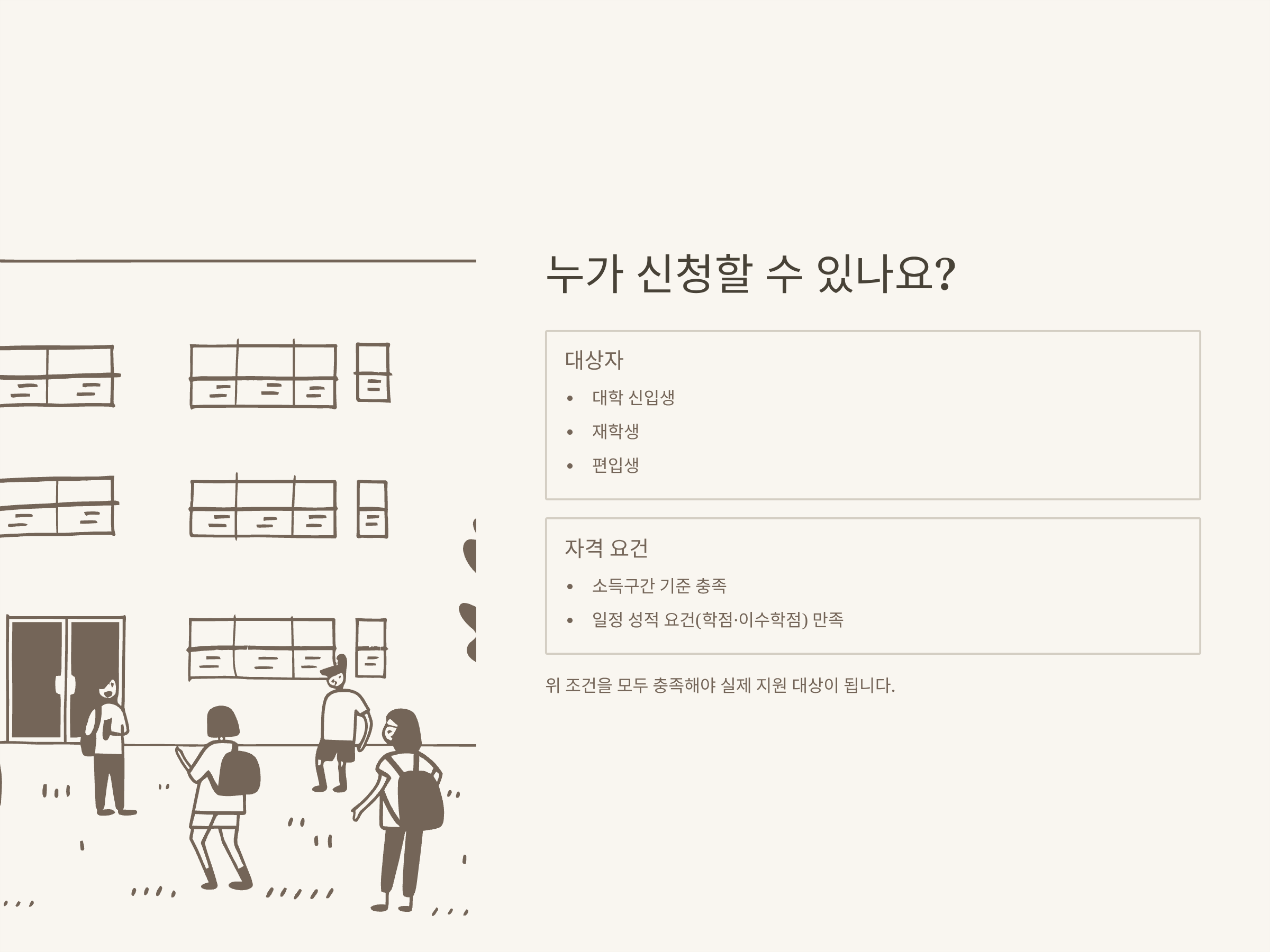신청 자격과 조건에 대한 최신 정보는 한국장학재단에서 상세히 안내하고 있으니 반드시 공식 자료를 확인하시길 권합니다. 신청 자격 확인하기
