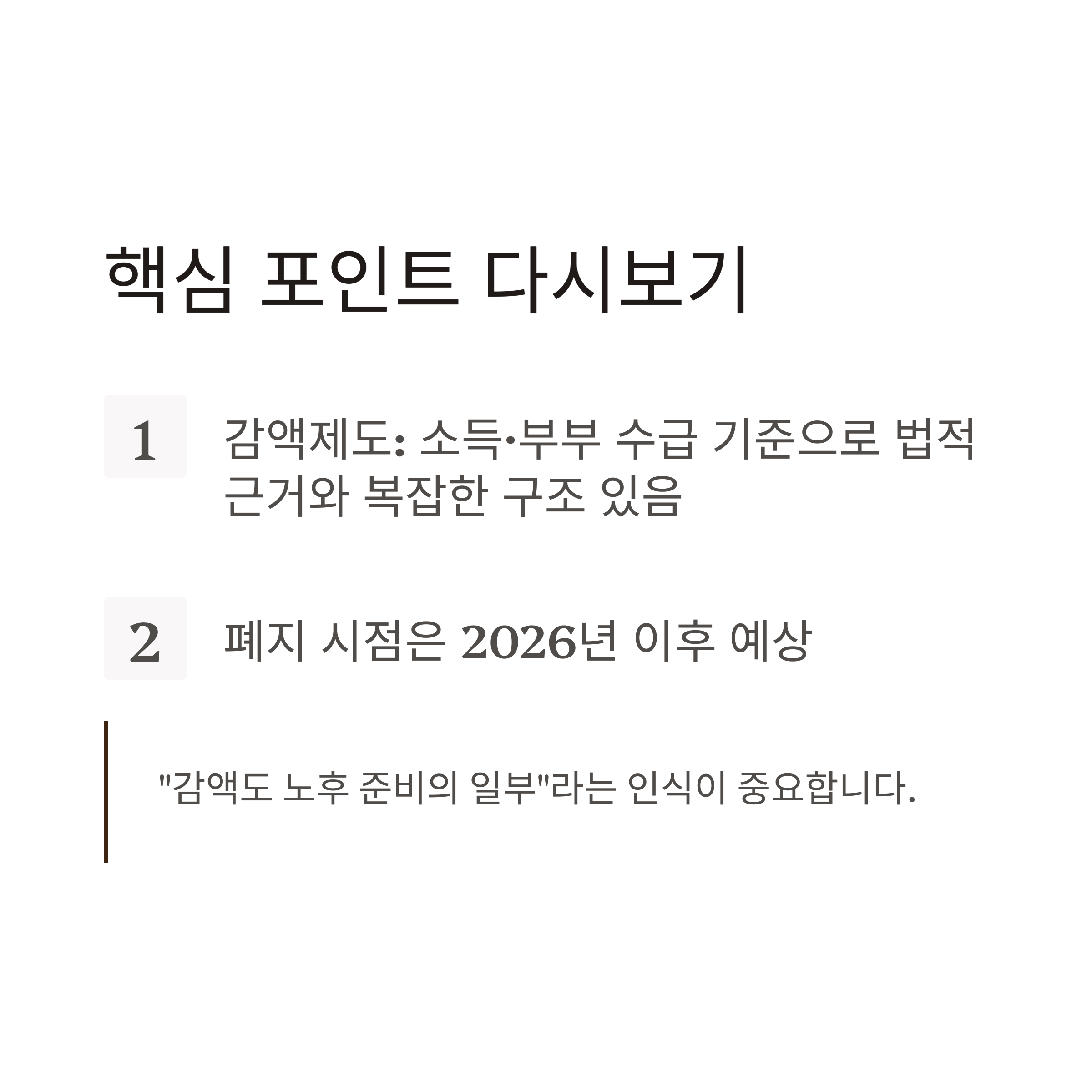 저처럼 감액을 직접 겪고 있는 분들에겐 반가운 소식이 아닐 수 없습니다. 다만 구체적인 폐지 시점은 국회 입법과 예산 심의를 거쳐야 하므로, 당장 큰 변화보다는 중장기적 접근이 필요합니다.