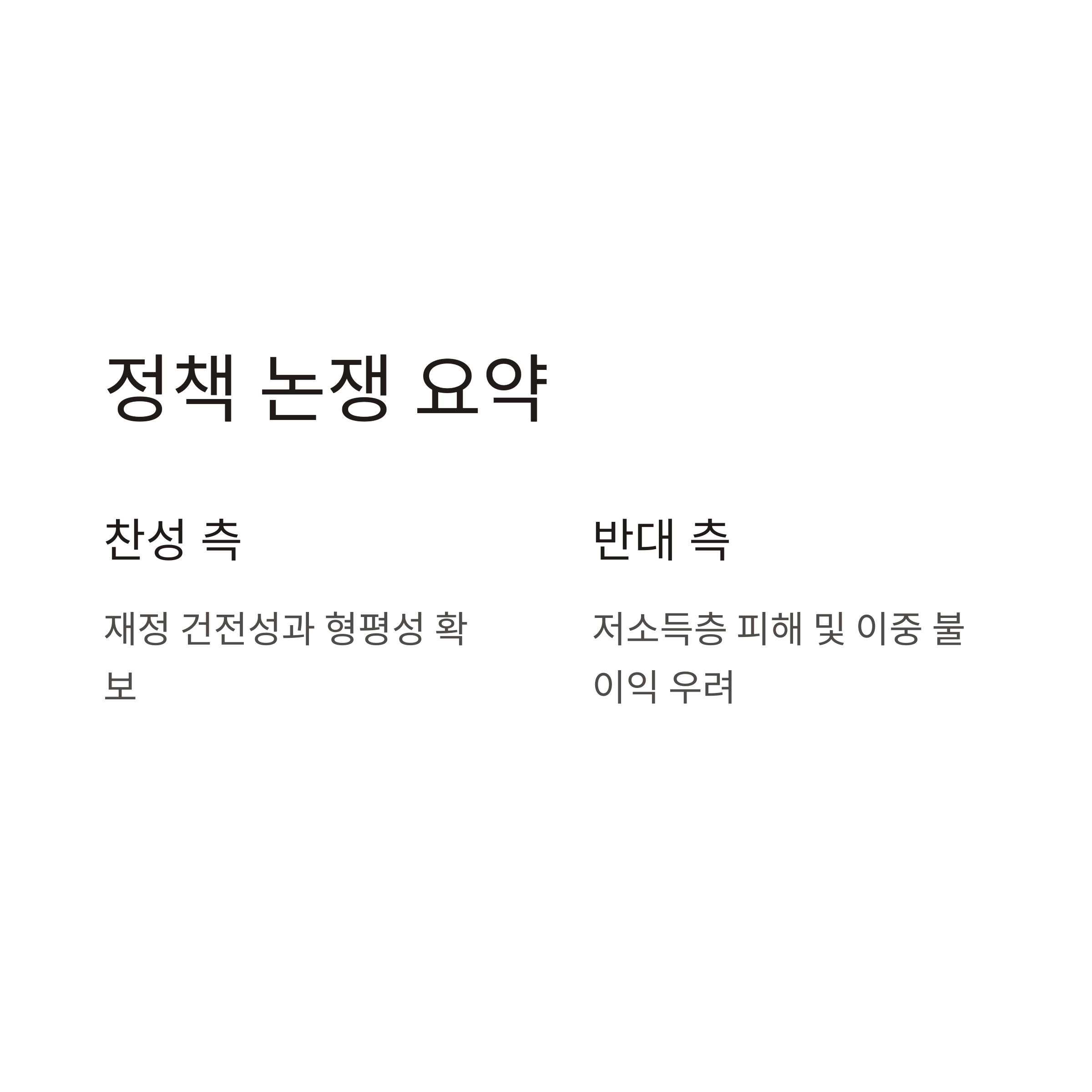 | 찬성 | 재정 건전성 유지, 고소득자 형평성 확보 |