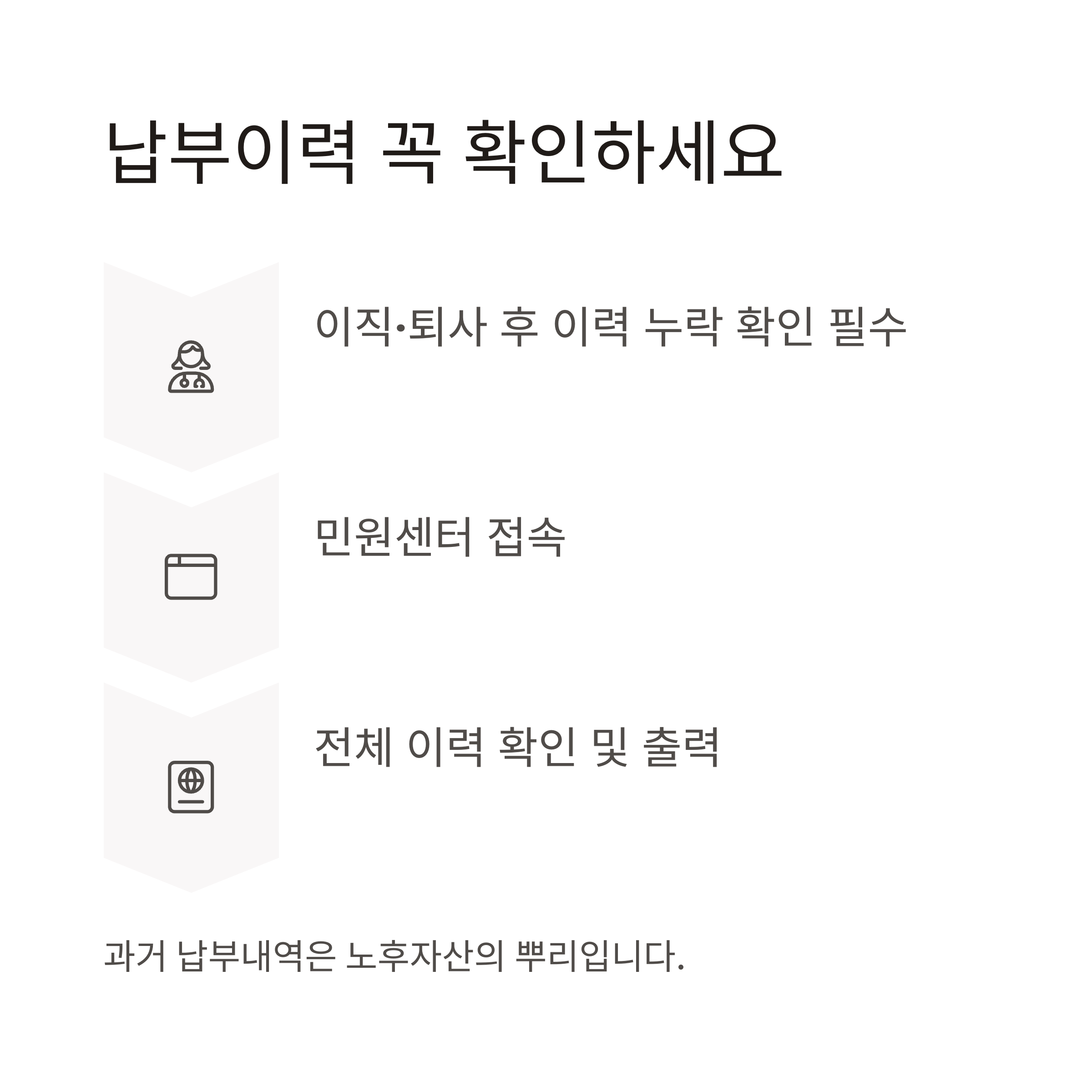 이 과정에서 저는 예전에 단기 근무한 직장에서도 몇 개월치 납부 이력이 남아 있다는 걸 확인할 수 있었고, 누락된 이력은 민원센터 문의를 통해 보완할 수 있었습니다.