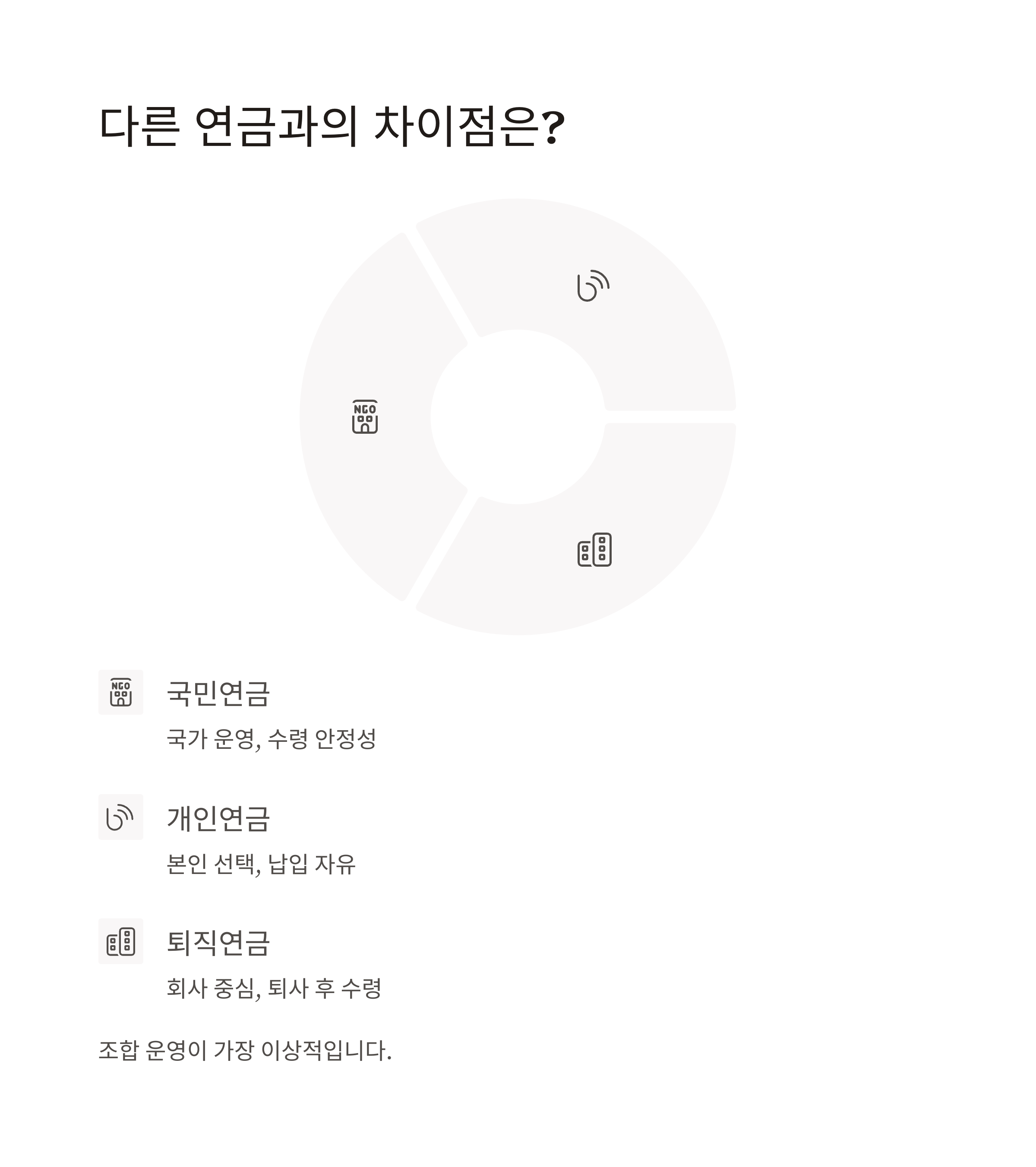 | 구분 | 국민연금 | 퇴직연금 | 개인연금 |