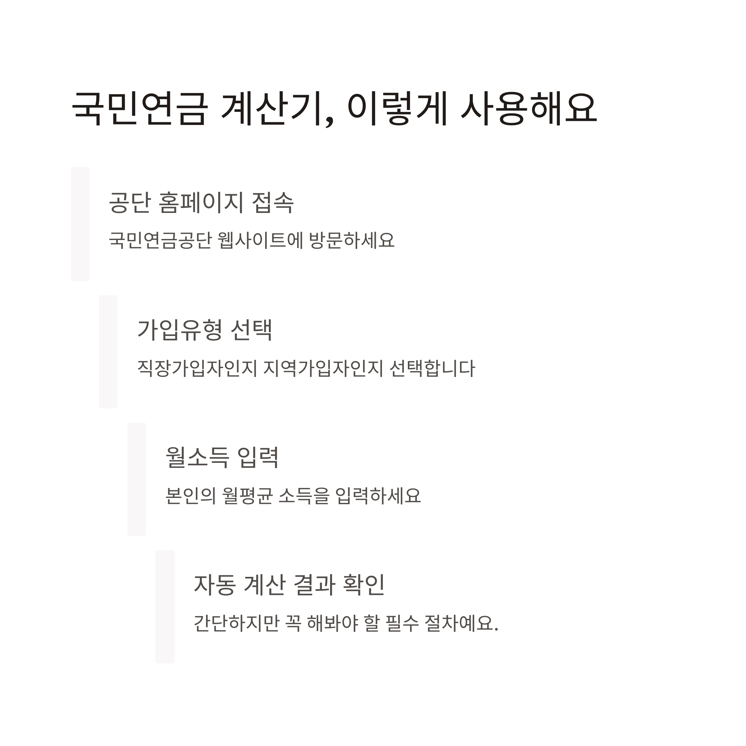 예상 수령액은 납부 기간과 납부 금액을 기준으로 계산됩니다. 계산기는 로그인 없이 모의계산도 가능하지만, 실제 납부이력 반영된 계산을 하려면 로그인 후 확인하는 게 정확하더라고요.