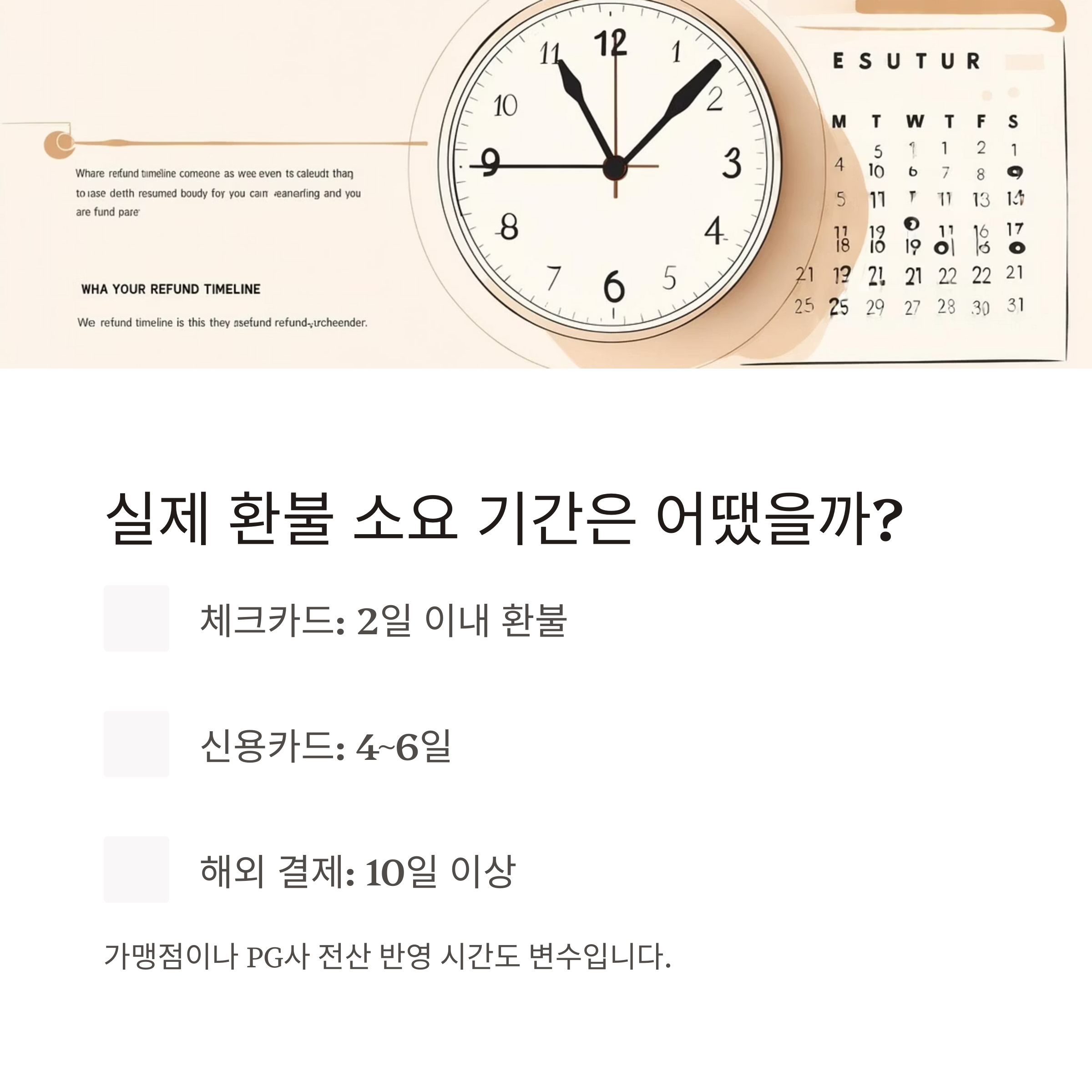 | 환불 소요기간 | 체크카드 1~3일, 신용카드 3~7일 |