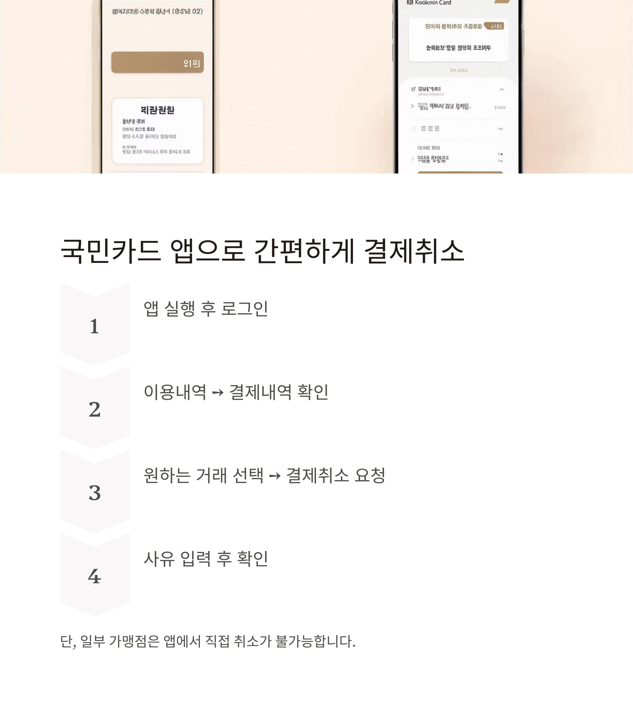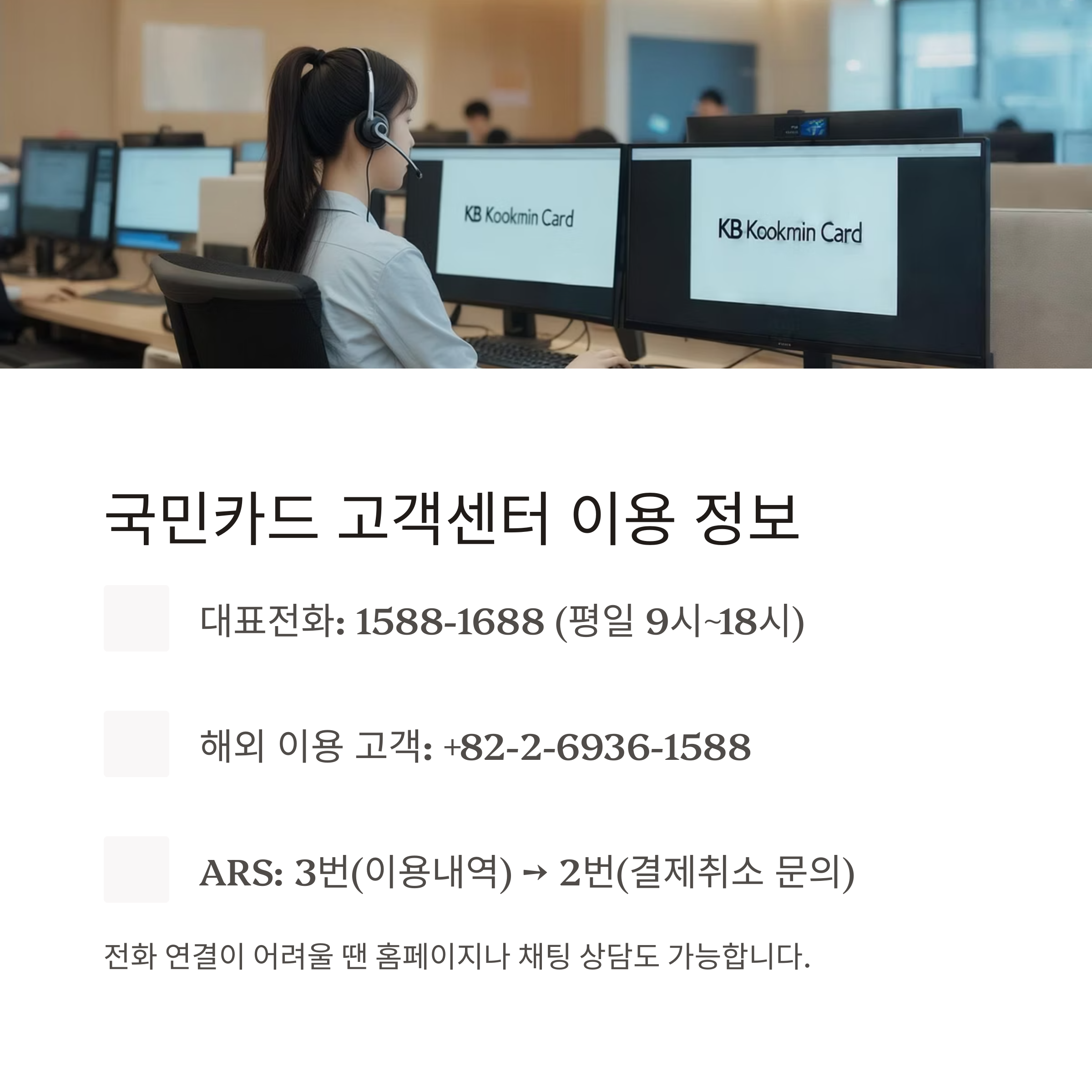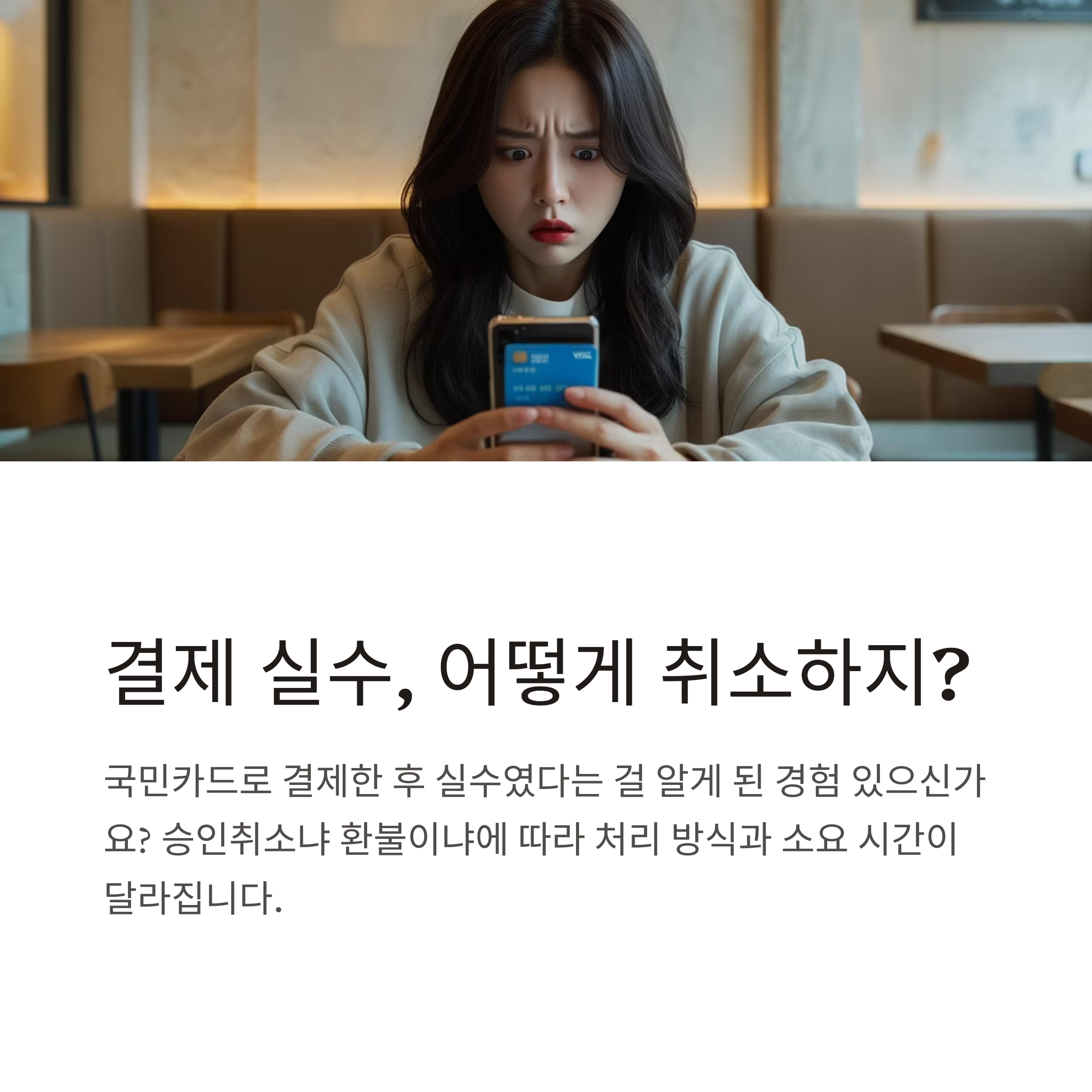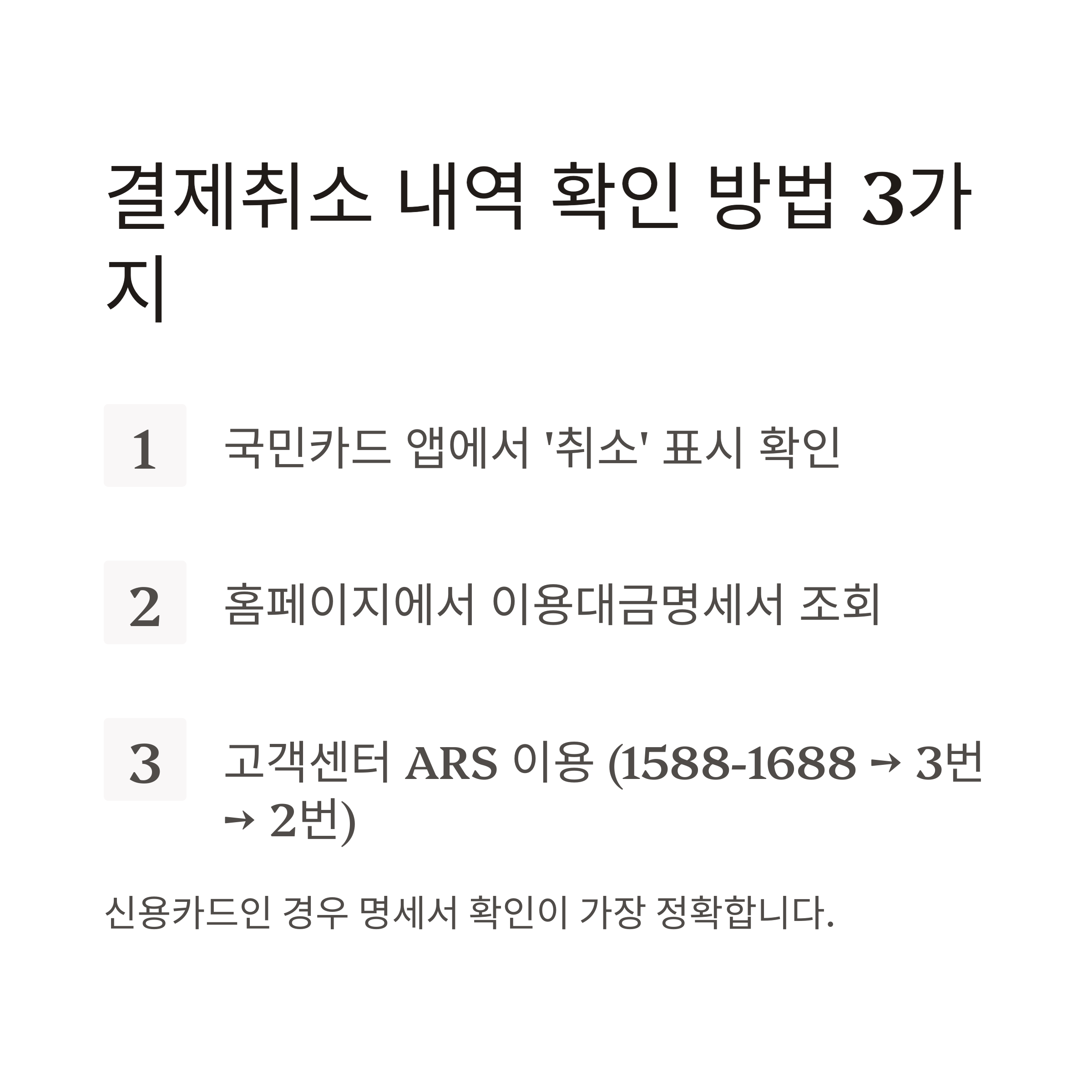 실제로는 구매처의 취소 정책과 카드사의 처리 방식을 함께 고려해야 하는 만큼, 헷갈릴 땐 망설이지 말고 국민카드 고객센터나 가맹점에 직접 문의해보시는 걸 추천드립니다.