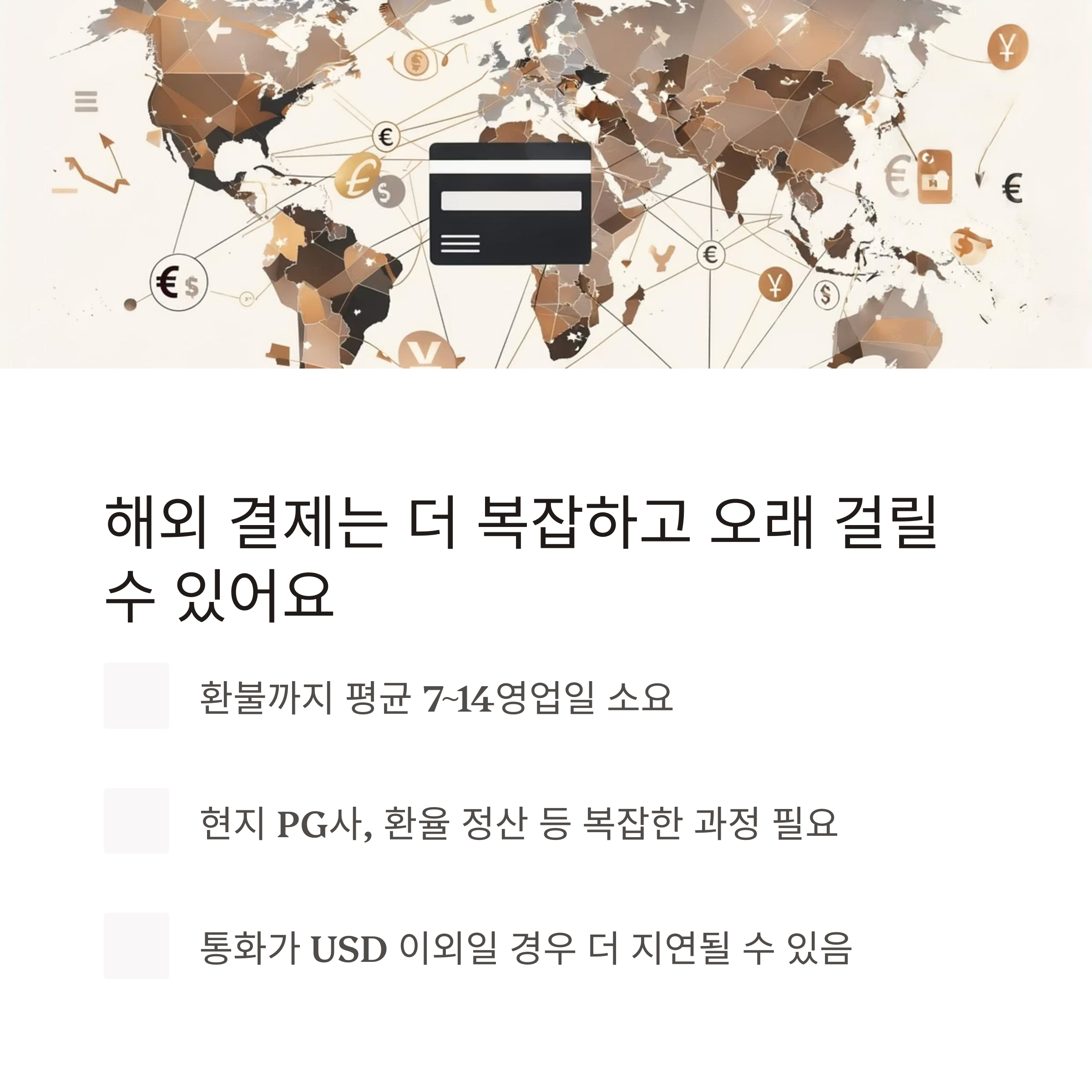 | 통화가 USD 이외 | 추가 2~3일 지연 가능 | 정산 은행 처리 시간 필요 |
