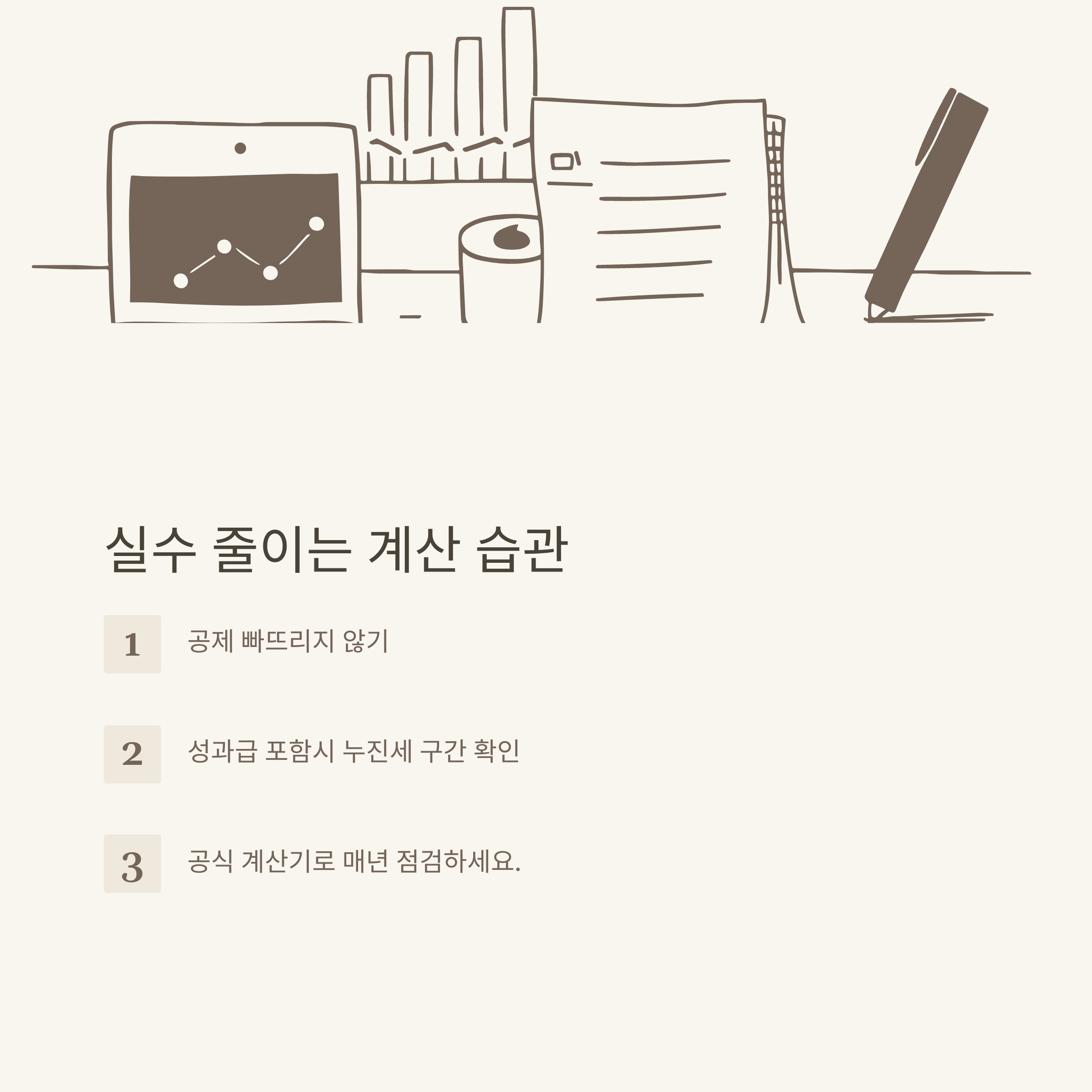 - 홈택스·국세청 계산기 등 공식 도구로 검증