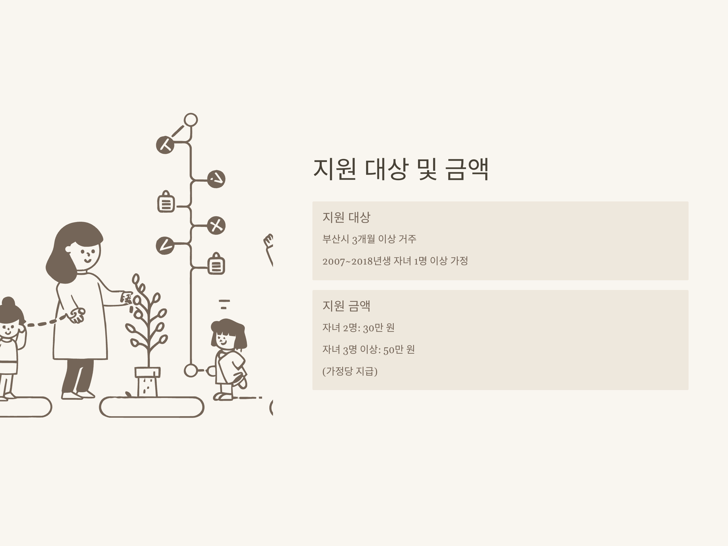 | 필수 조건 | 부산 3개월+ 거주, 해당 연령 자녀 1명 이상 |