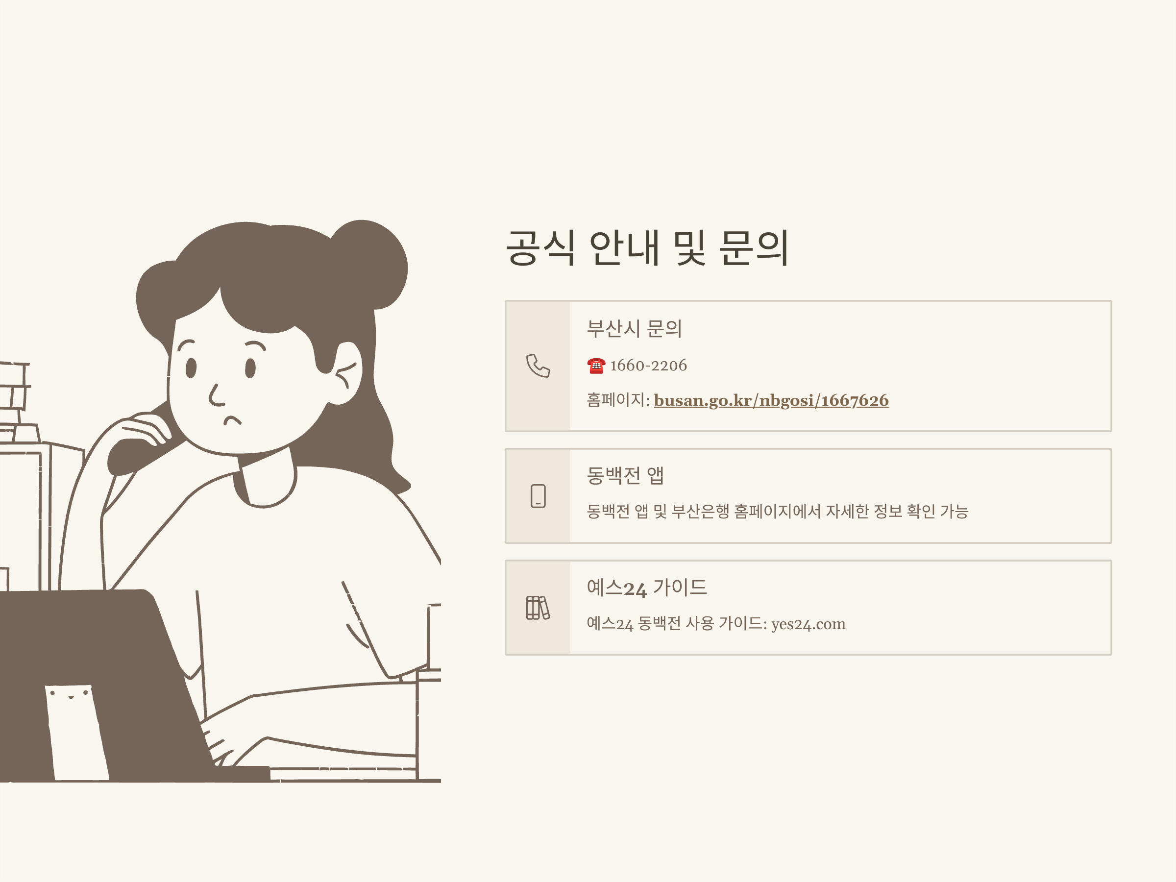 | 공식 문의 | 부산시 1660-2206, 동백전 앱, 부산시 홈페이지 |