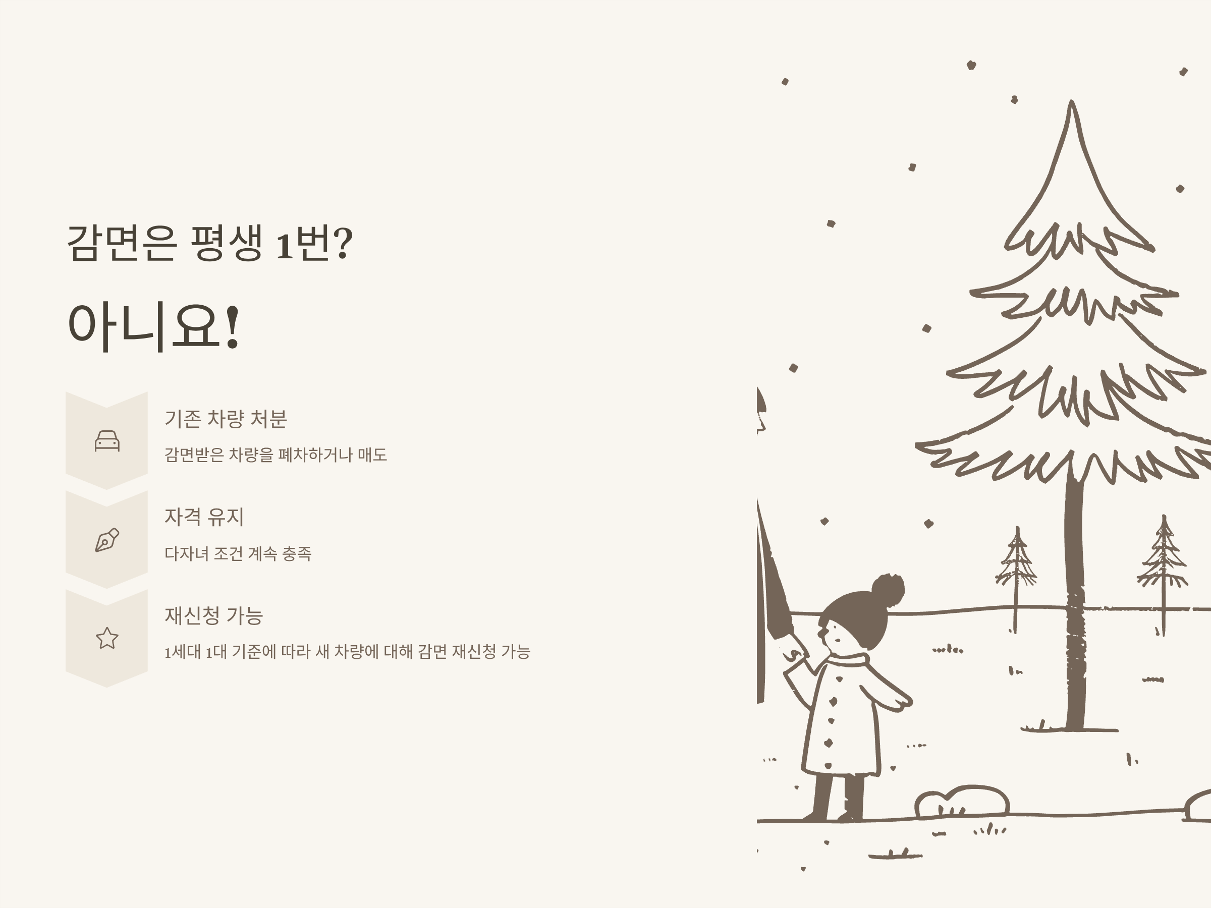 | 감면횟수 | 1세대 1대 | 폐차·양도 후 재신청 가능 |