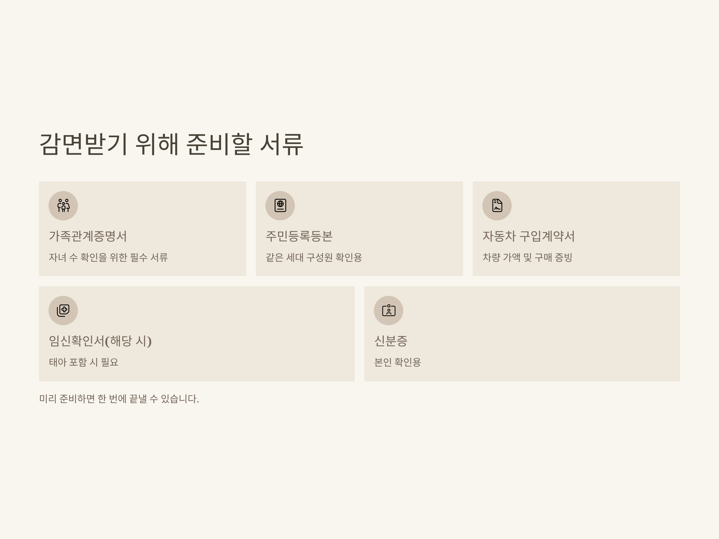 공식 서류 안내는 정부24 다자녀 감면안내에서 최신 양식도 확인 가능합니다.