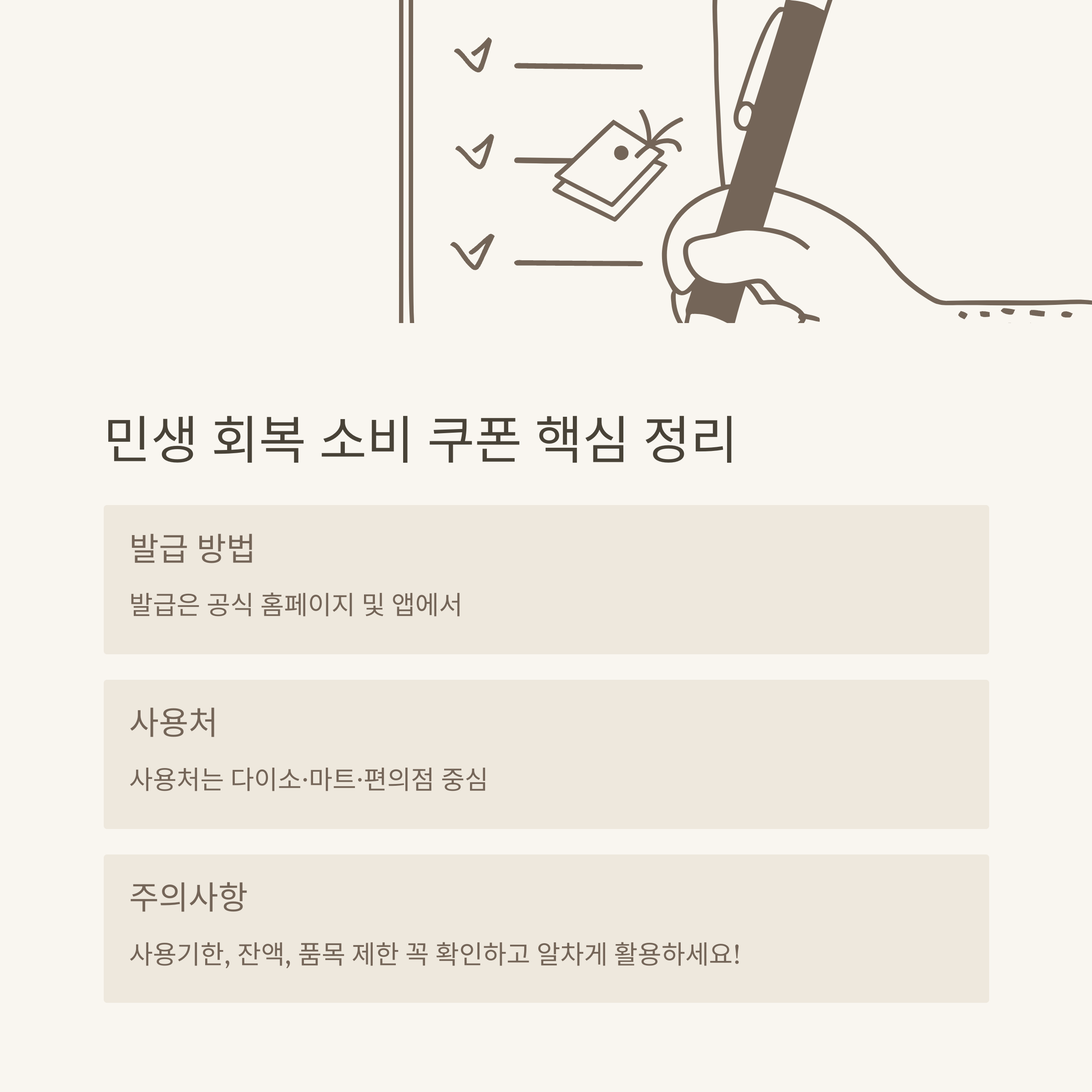 민생 회복 소비 쿠폰 사용법 완벽 정리|민생회복 소비쿠폰 다이소 사용법부터 사용처·발급·적용팁 안내