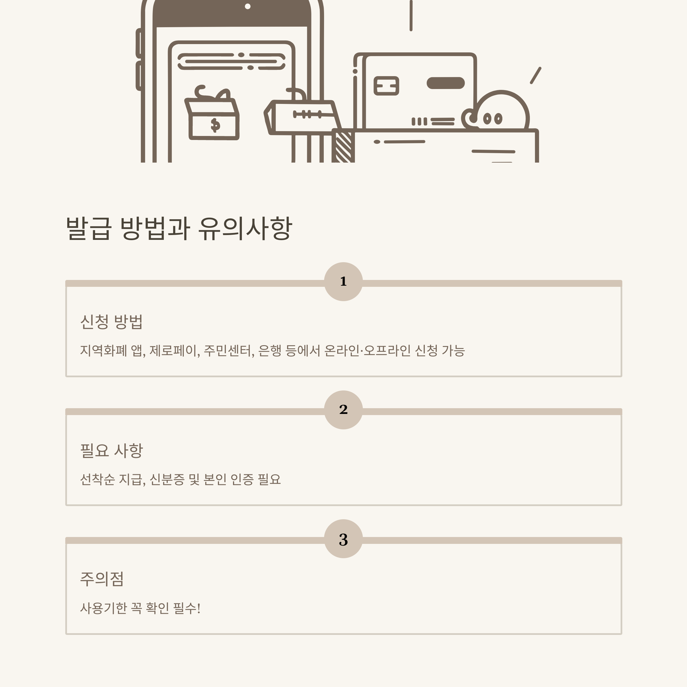 개인 경험: 저는 평소 스마트폰 앱을 잘 쓰는 편이라 지역화폐 앱으로 신청했는데, 부모님은 오프라인에서 발급 받으셨습니다. 발급 당일에는 생각보다 대기자가 많아, 미리 시간적 여유를 두고 방문하는 걸 추천드립니다.