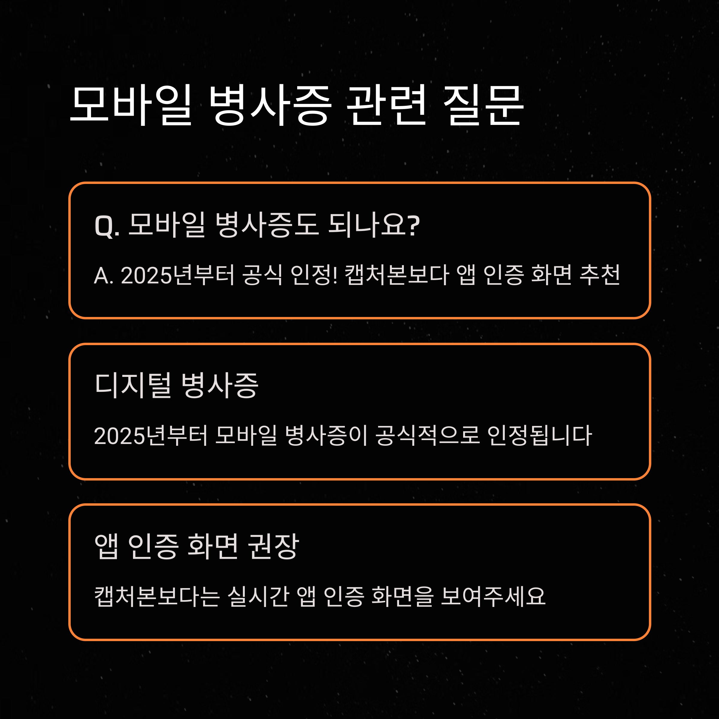 A. 2025년부터 모바일 병사증 및 휴가증도 정식 인정됩니다.