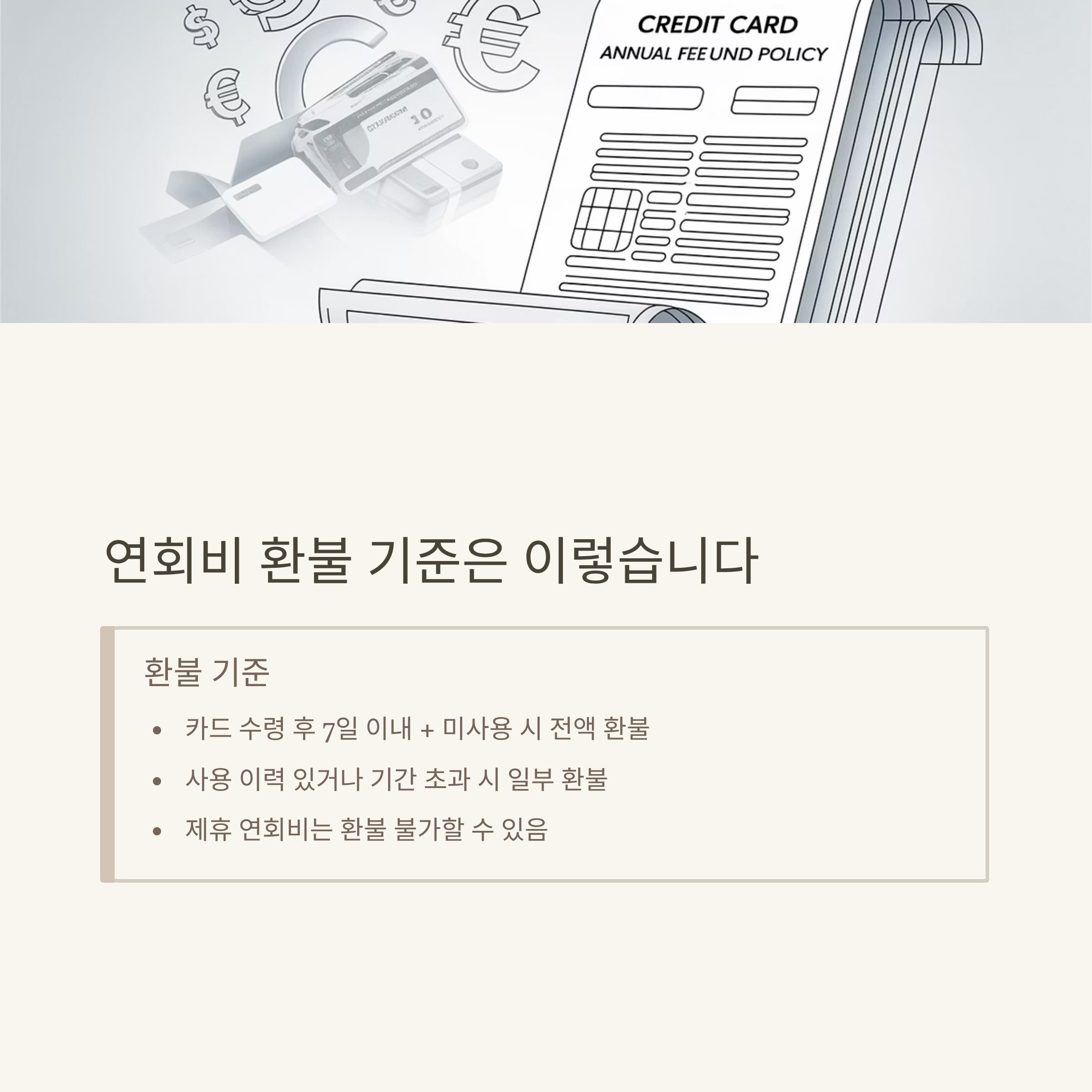 - 제휴 연회비가 있는 카드(예: 항공, 멤버십 제휴)는 환불 불가 항목 존재