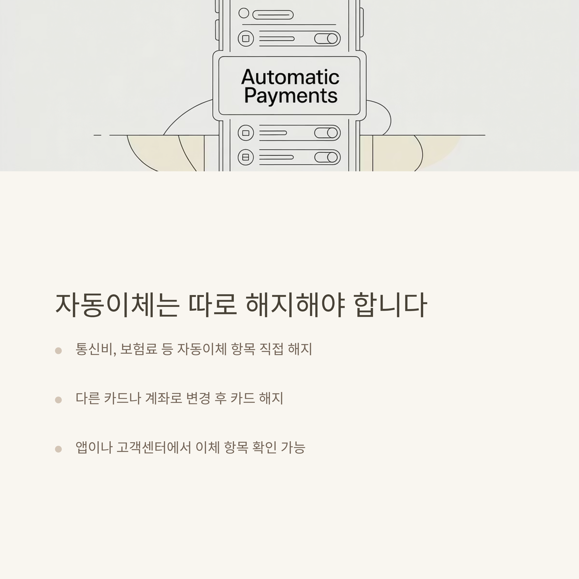 - 기존 자동이체 해지 후, 다른 카드나 계좌로 납부 수단 변경 필요