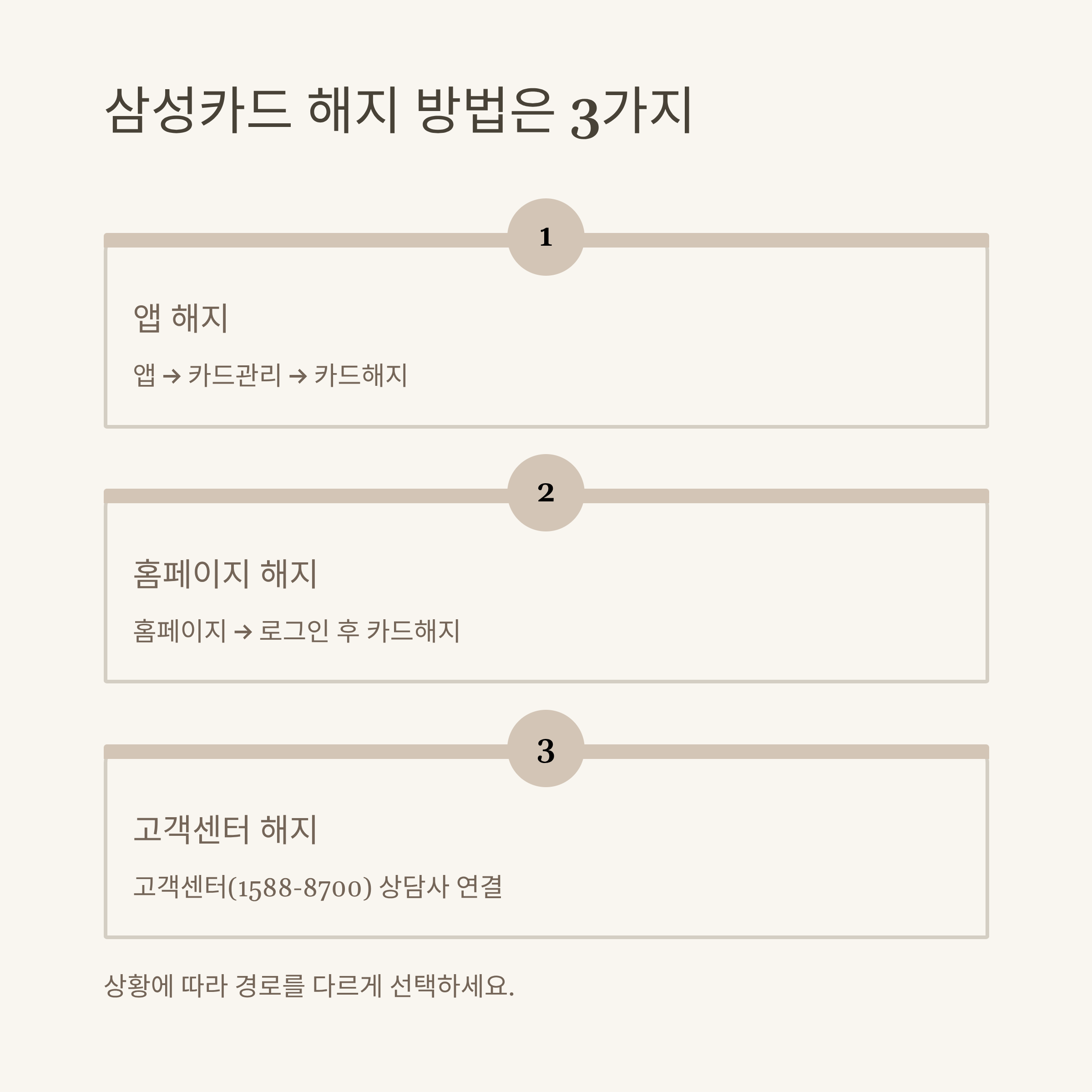 삼성카드 해지 전에 고객센터(☎ 1588-8700)나 공식 홈페이지에서 본인 카드에 연결된 서비스 목록을 꼭 한 번 점검해보세요.