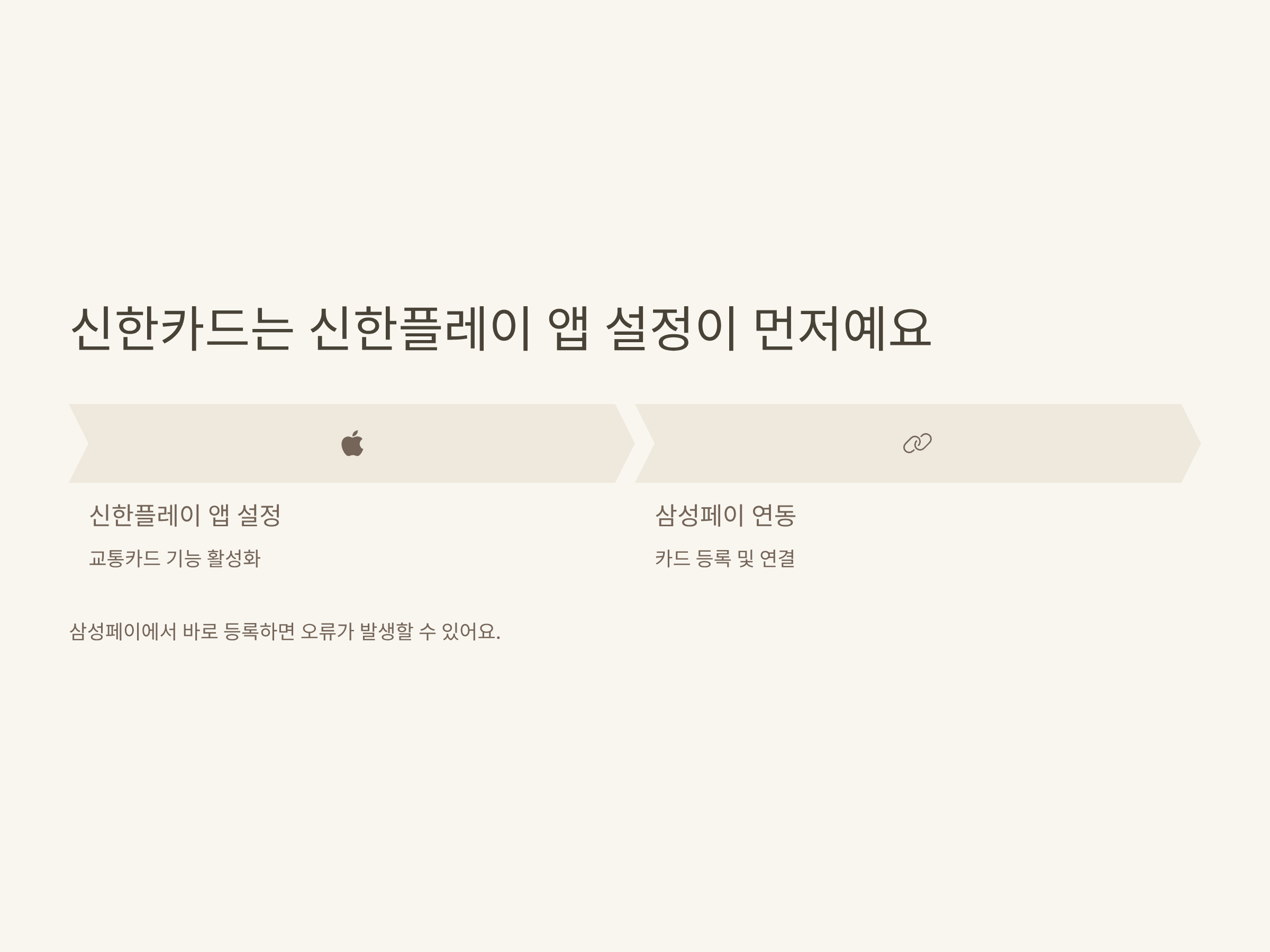 A. 신한카드는 반드시 '신한플레이 앱'에서 교통카드 기능을 먼저 활성화한 후 삼성페이에서 연동해야 합니다.