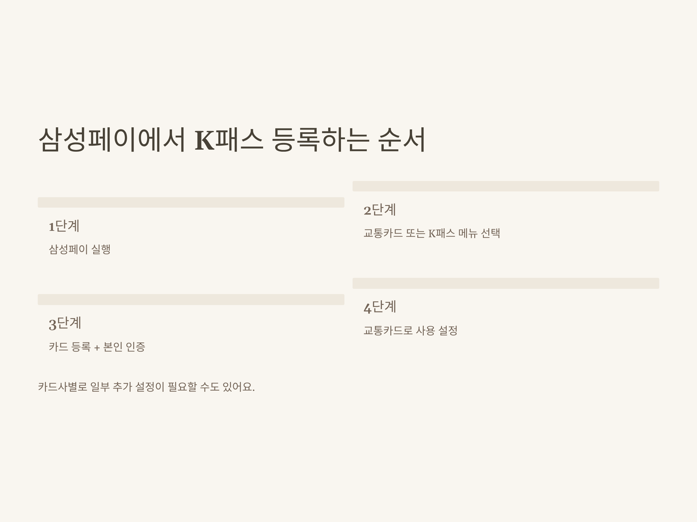 핵심 요약표 | 삼성페이 K패스 등록 한눈에 보기