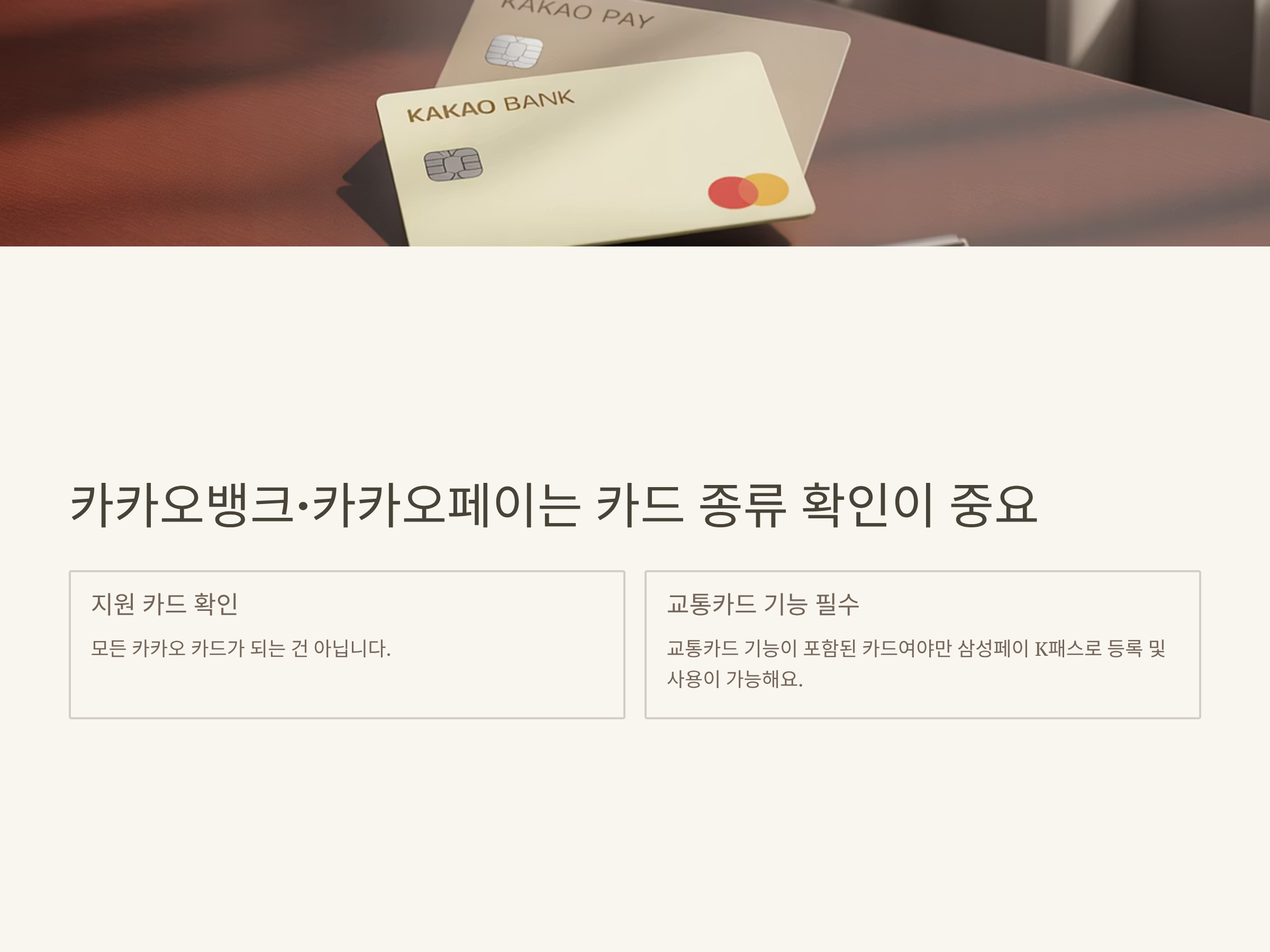 | 카카오뱅크/카카오페이 | 불필요 | 교통기능 포함 카드만 가능 | 카드별 사전 확인 필요 |