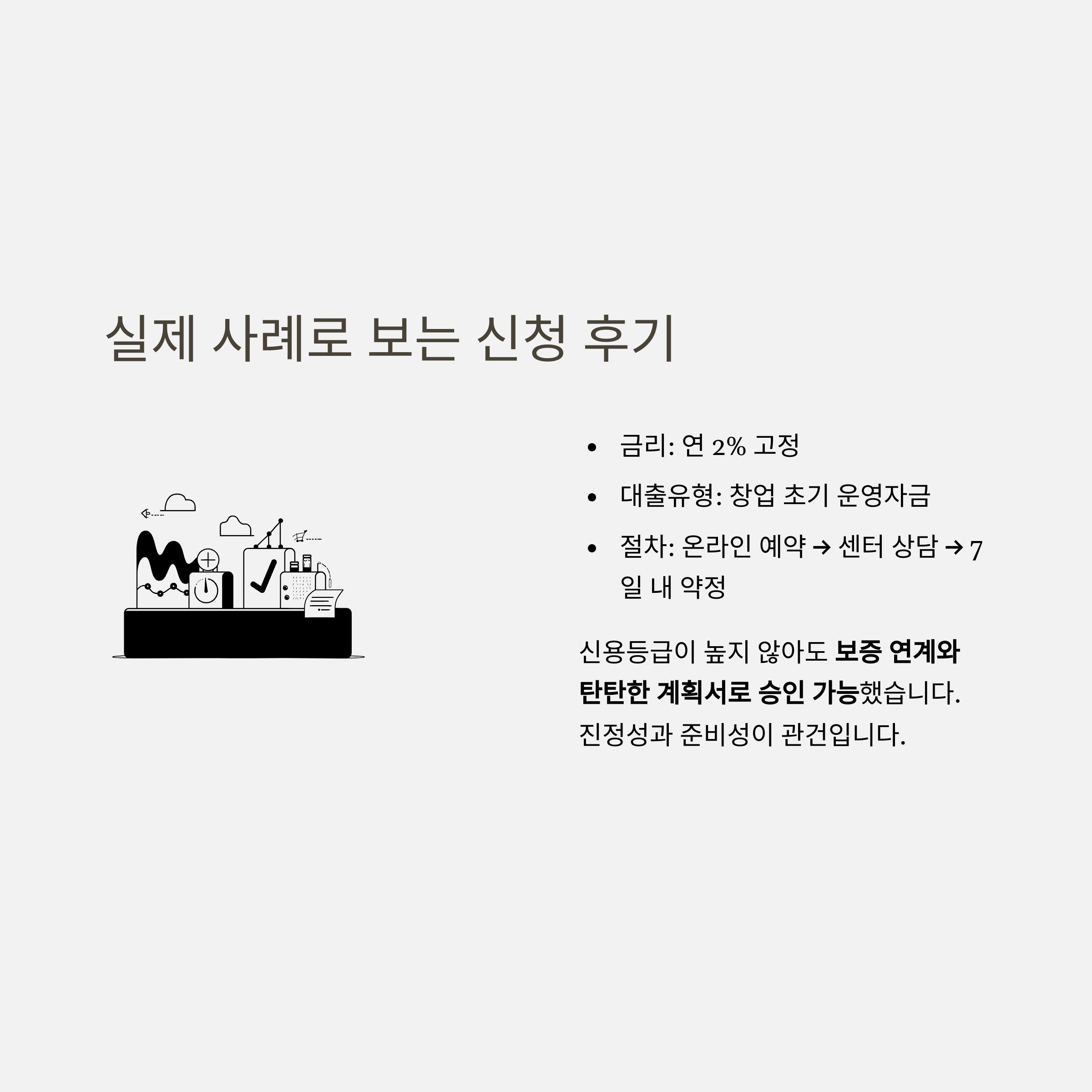 저는 실제로 2023년에 소상공인 정책자금 대출을 받았습니다. 사업 초기였고, 자금은 정말 절실했거든요. 그때 받았던 대출이 제 사업 운영에 숨통을 틔워줬다고 해도 과언이 아니에요. 후기 요약: