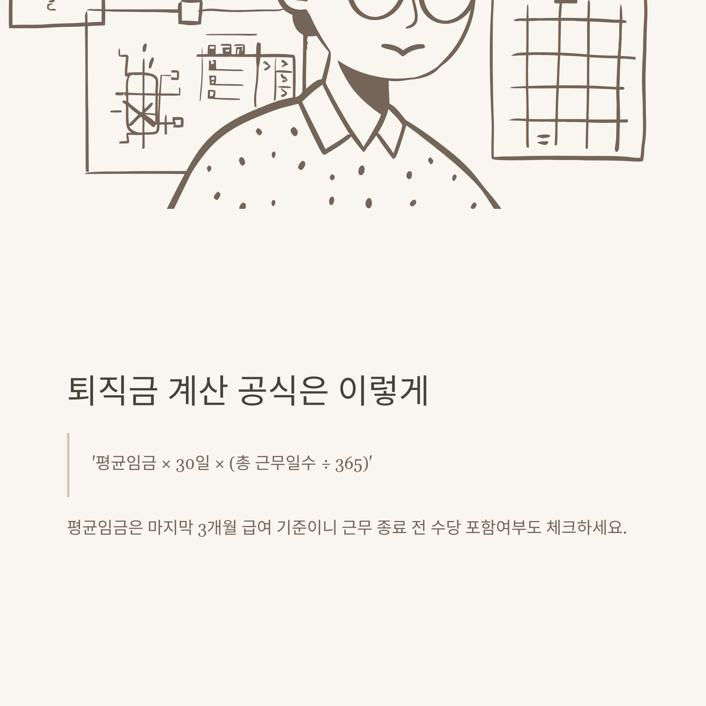 기본 공식 | 평균임금 × 30일 × (총 근무일수 ÷ 365) |