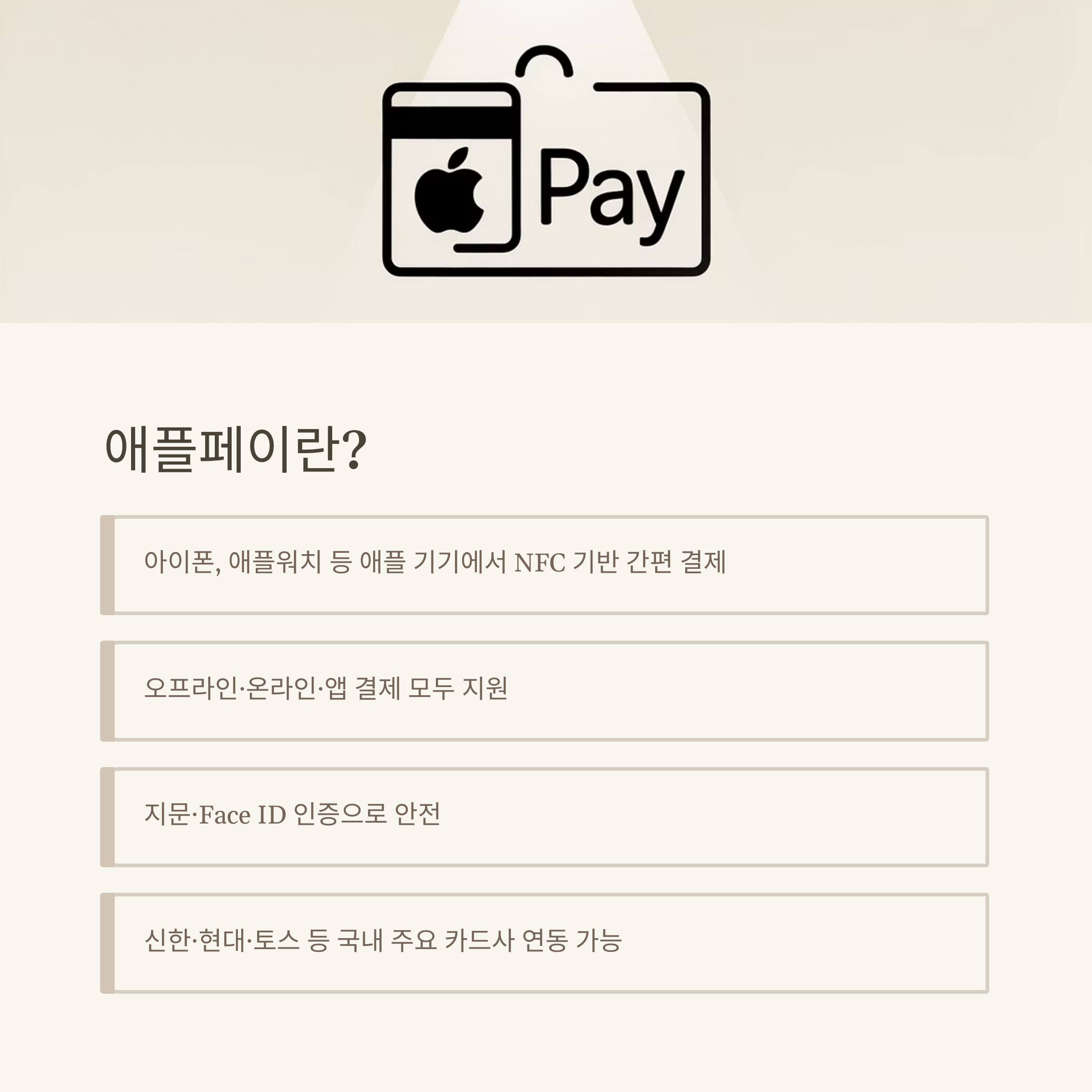 - 애플 기기(아이폰, 애플워치 등)에서 비접촉 결제 가능
