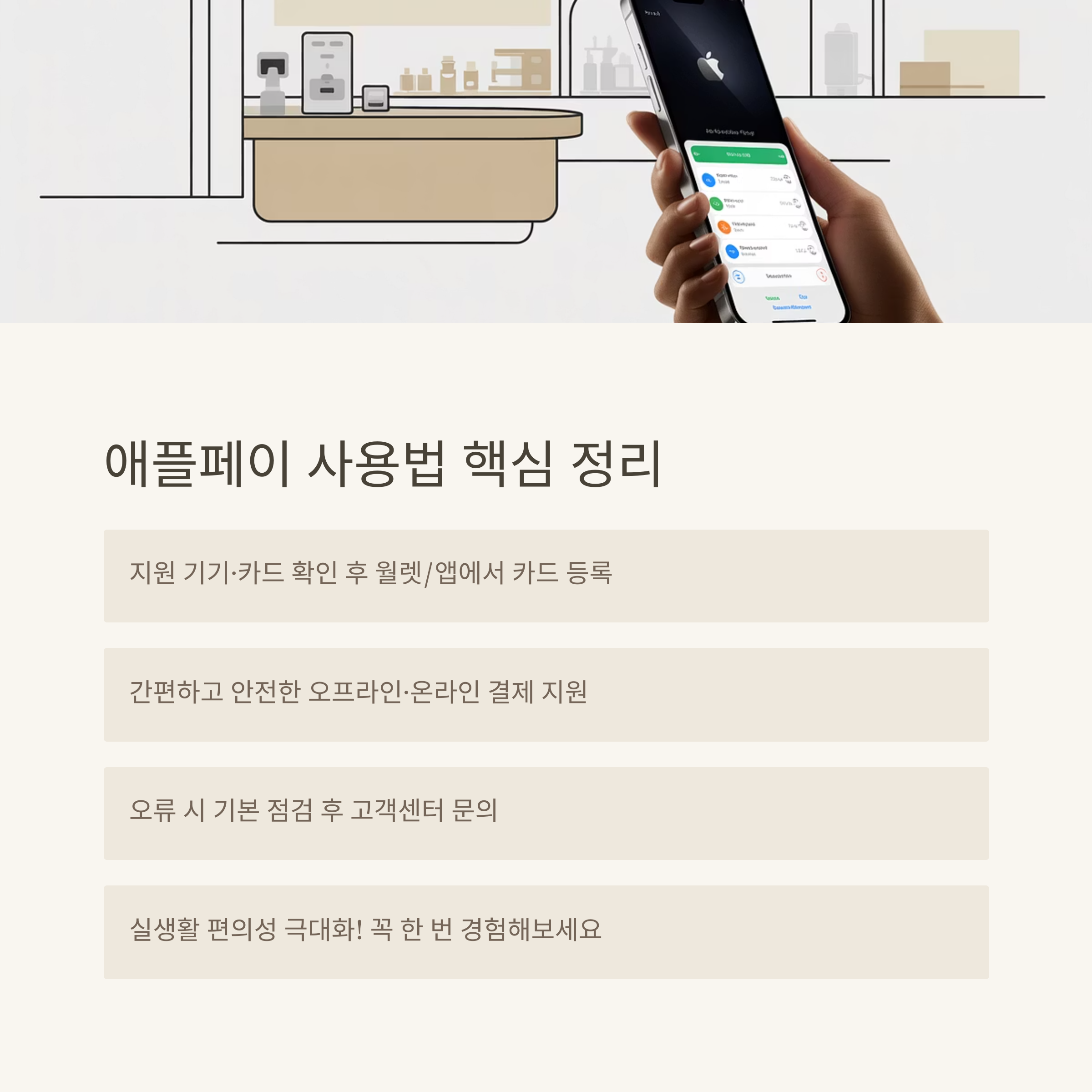 - 필수: 애플 ID 로그인, 카드 본인 명의, 최신 OS 업데이트