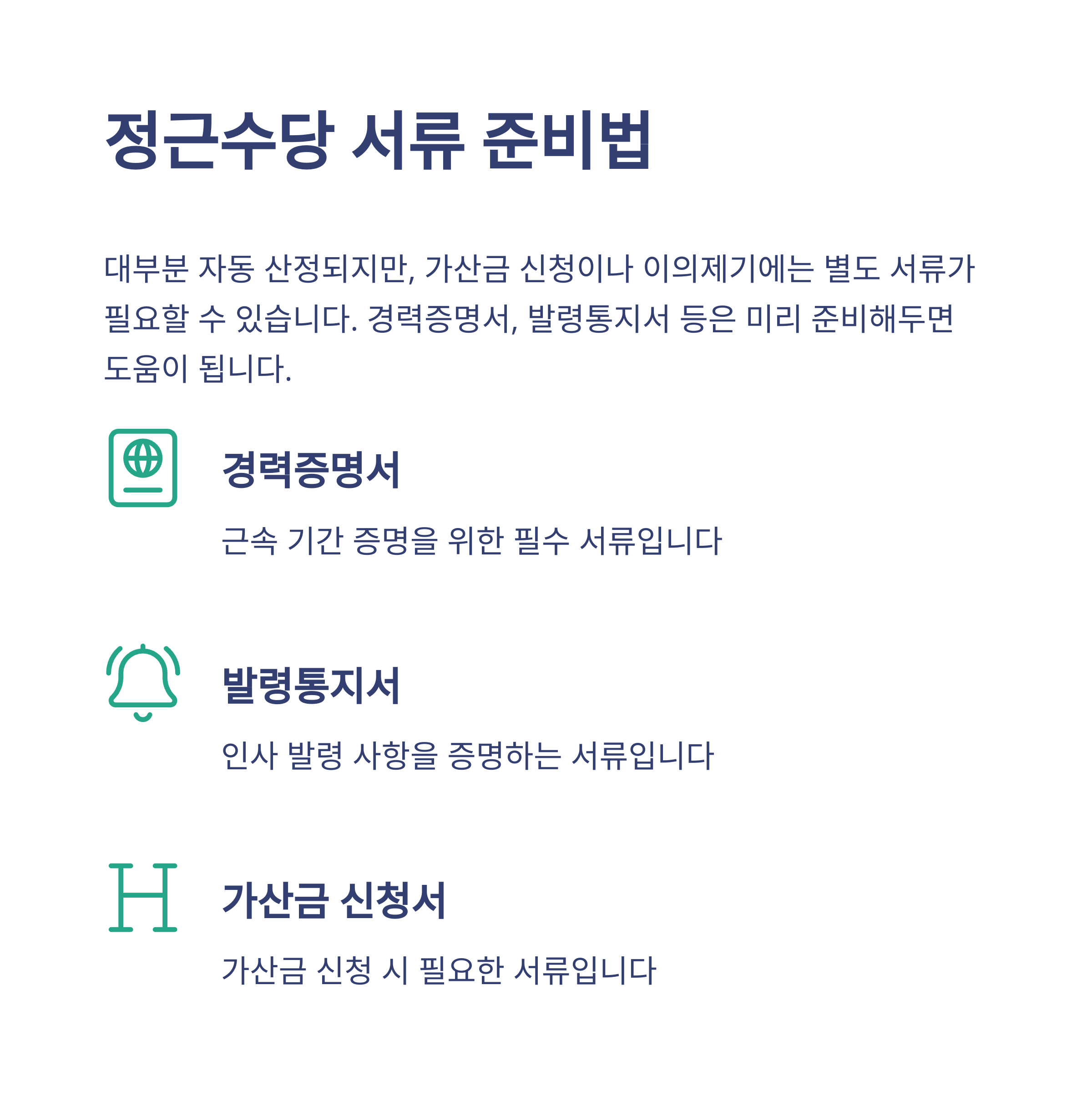 정근수당은 근속 보상의 핵심입니다. 지급 기준과 내역, 가산금, 지급시기를 꼼꼼히 챙기면 억울한 일이 없을 거예요.