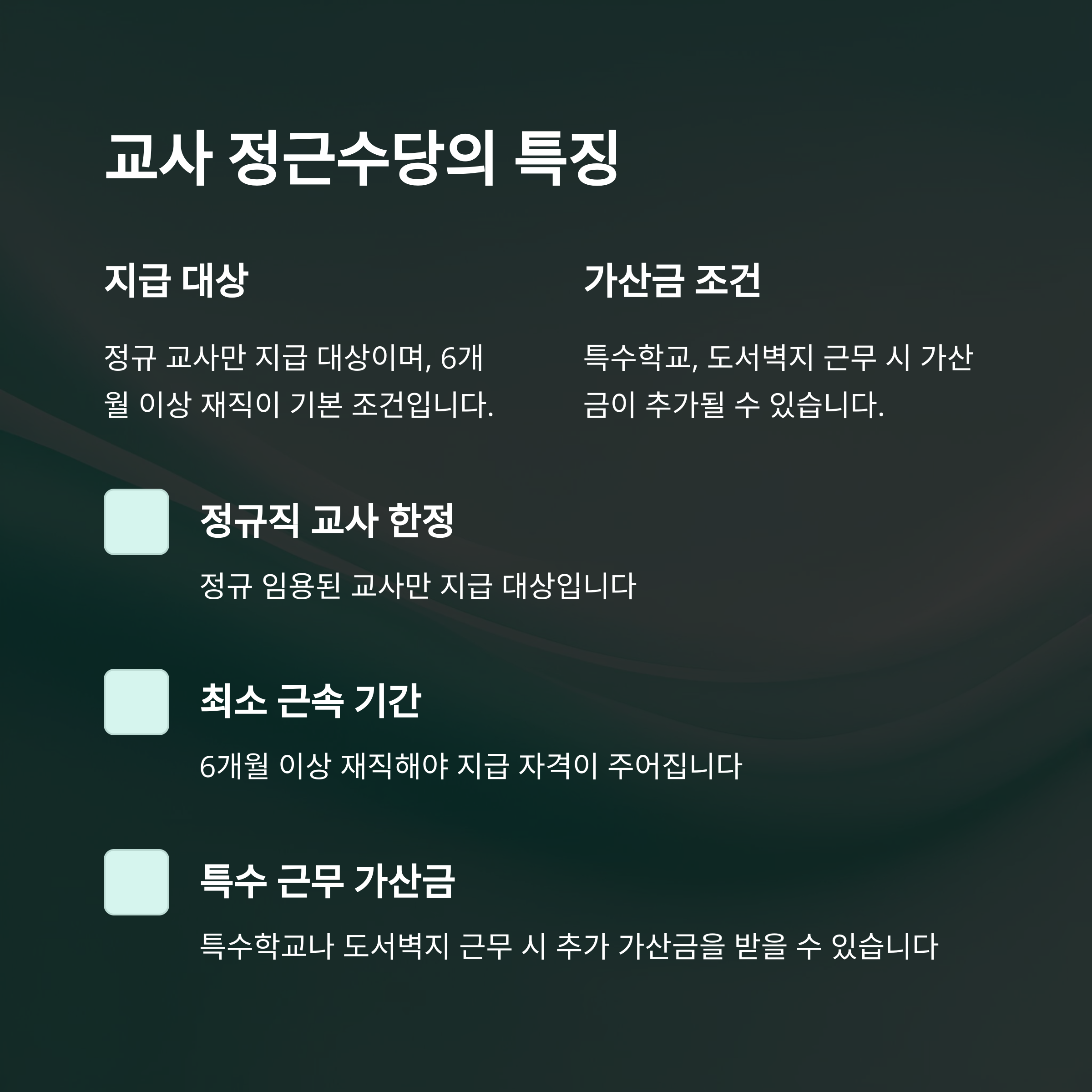 - 지급 대상: 초·중·고 정규 교사(기간제 제외)