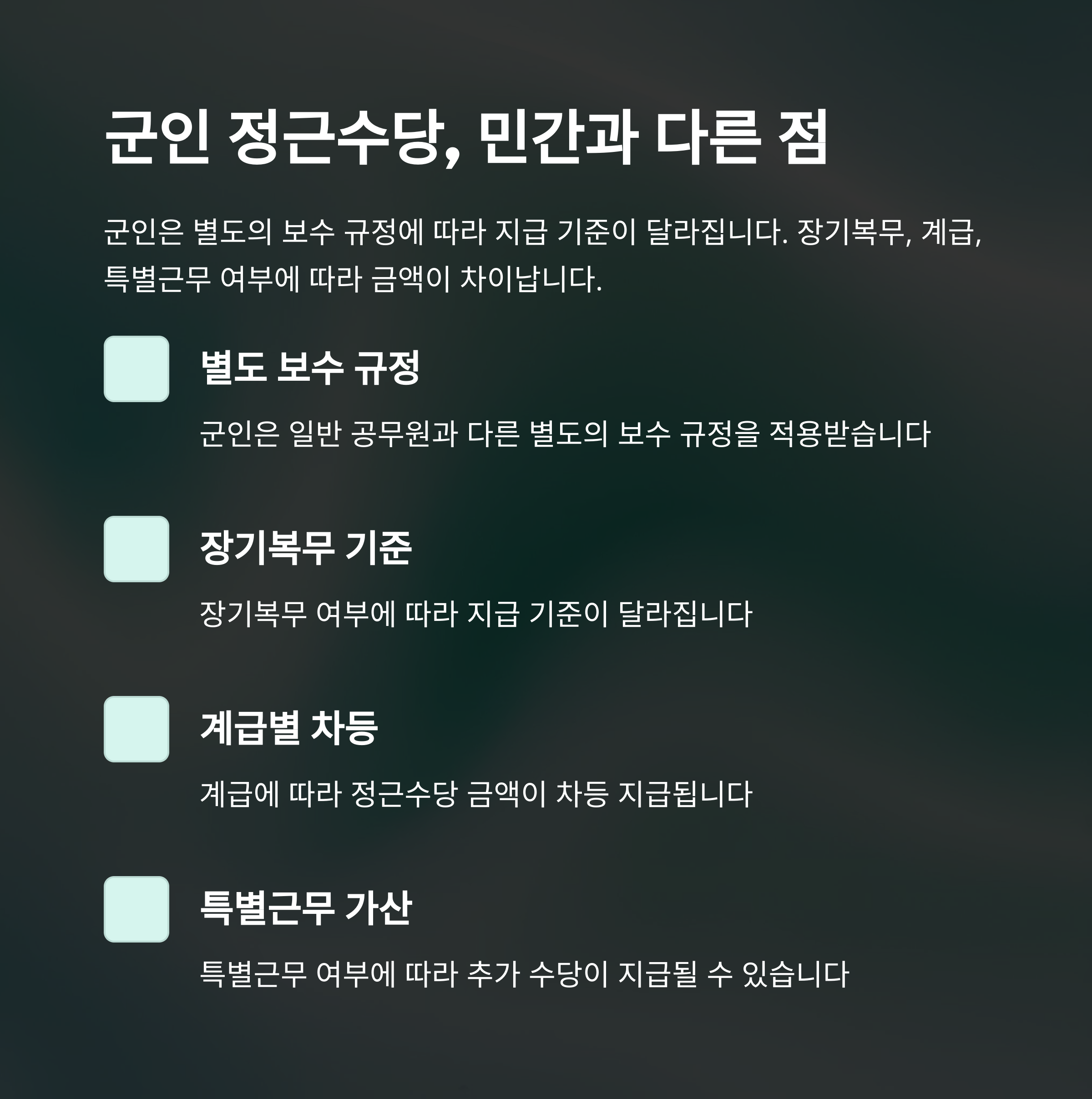 - 군인은 ‘군인보수규정’에 따라 별도 지급 기준 적용