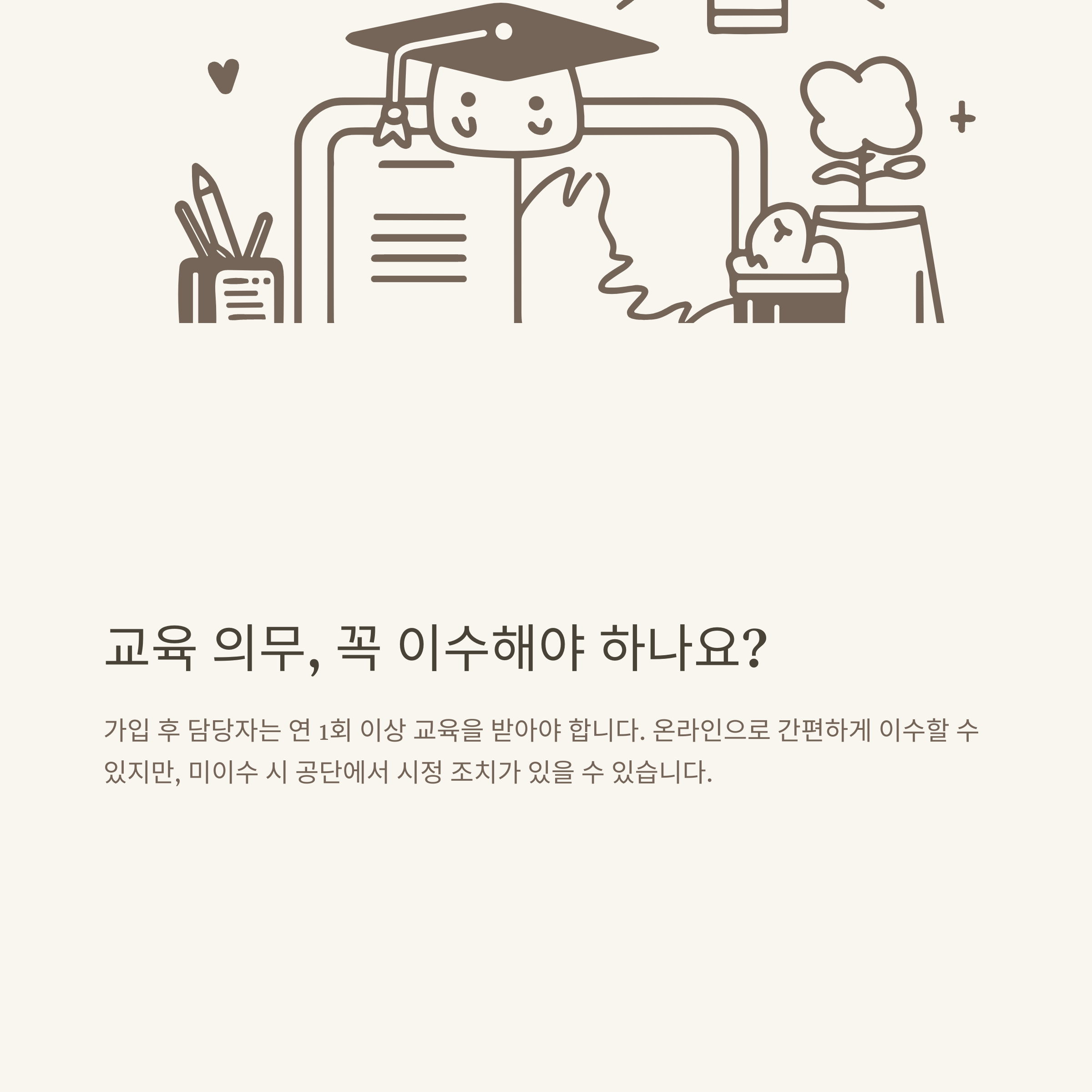 교육 의무 | 연 1회 이상 이수 | 미이수 시 불이익 |