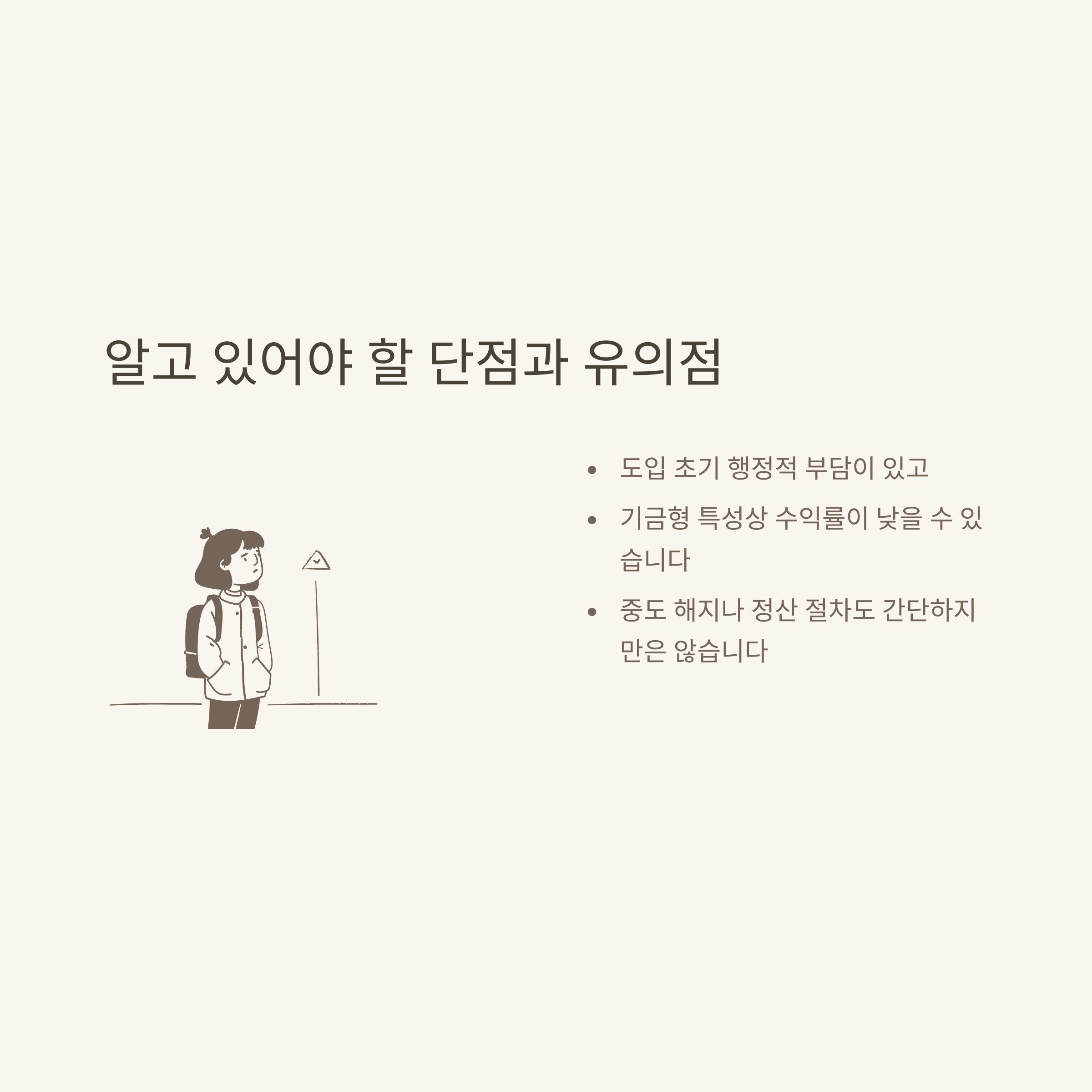 - 기금 운용 방식, 수익률 등 사전 확인 필수