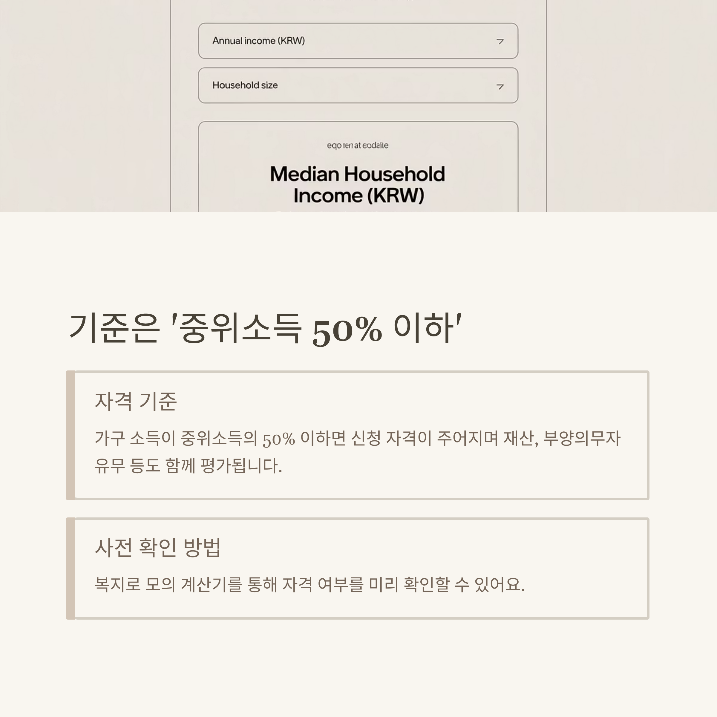 - 모의 계산기 활용: 소득인정액 및 조건 확인